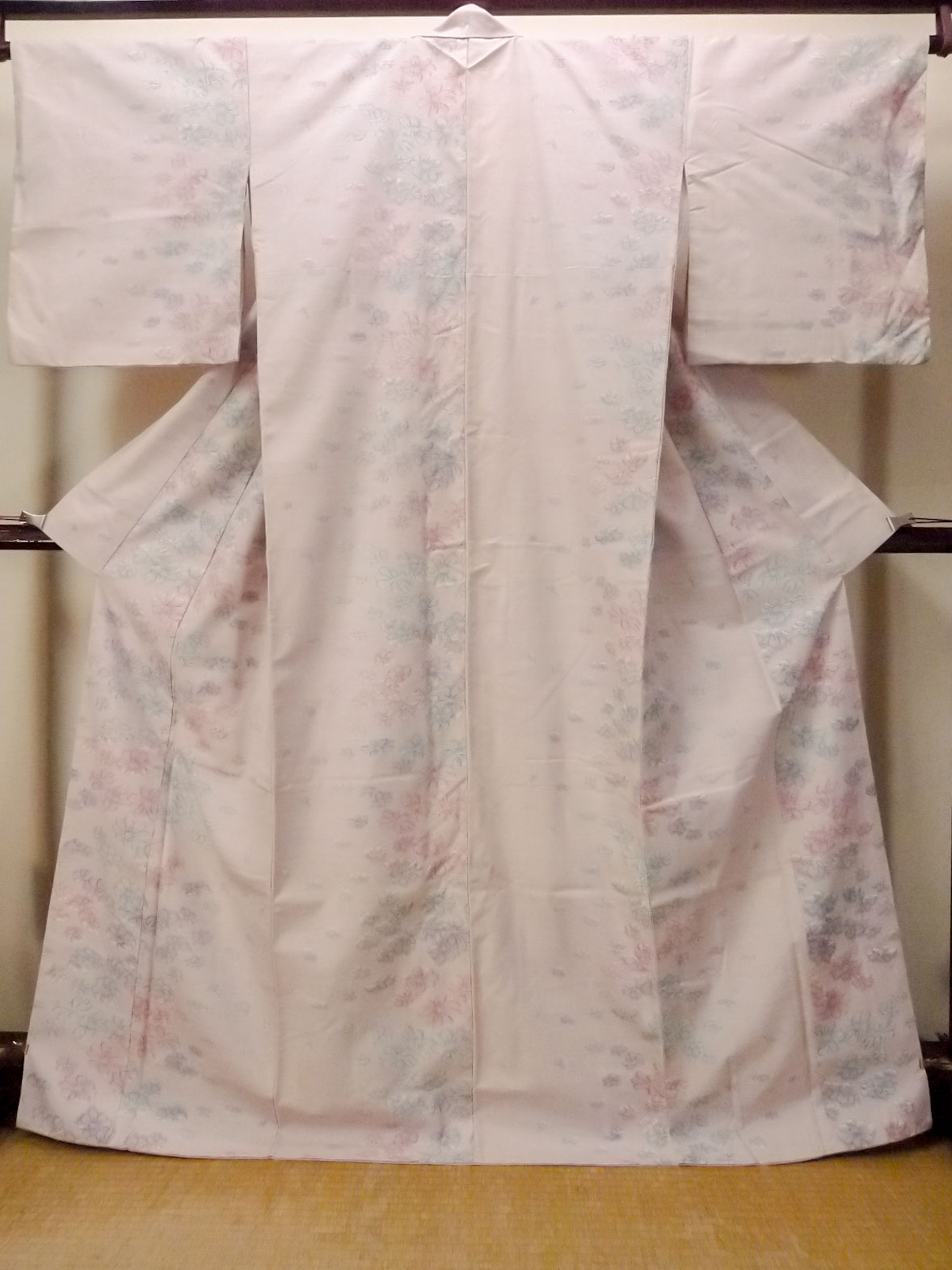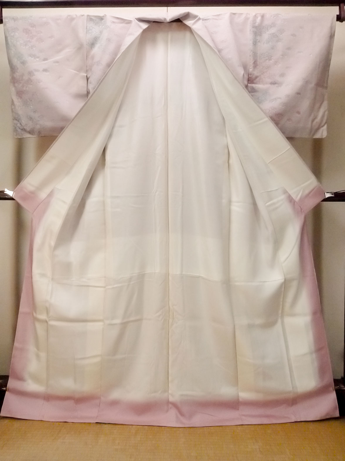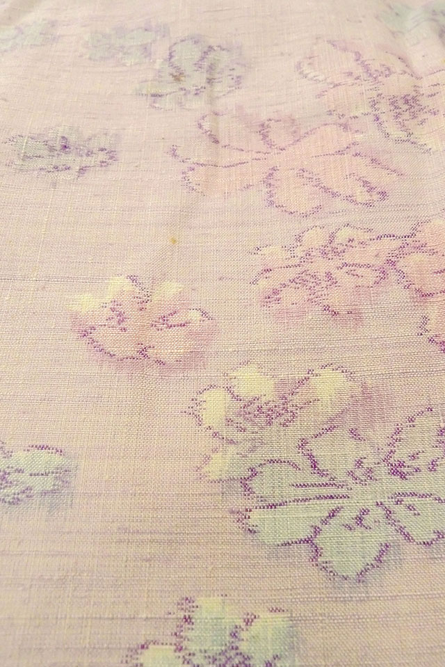 O1126J Vintage Japanese kimono Pale Pink TSUMUGI pongee for women / Silk. Flower (Grade C)