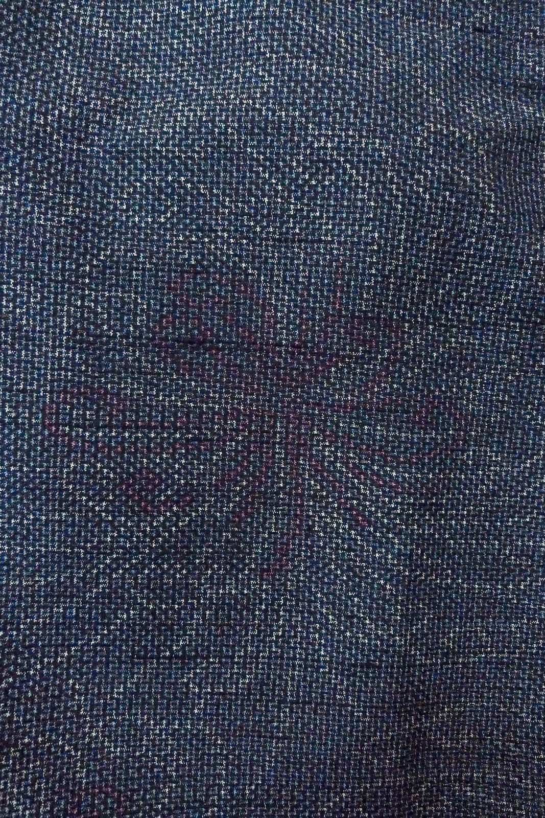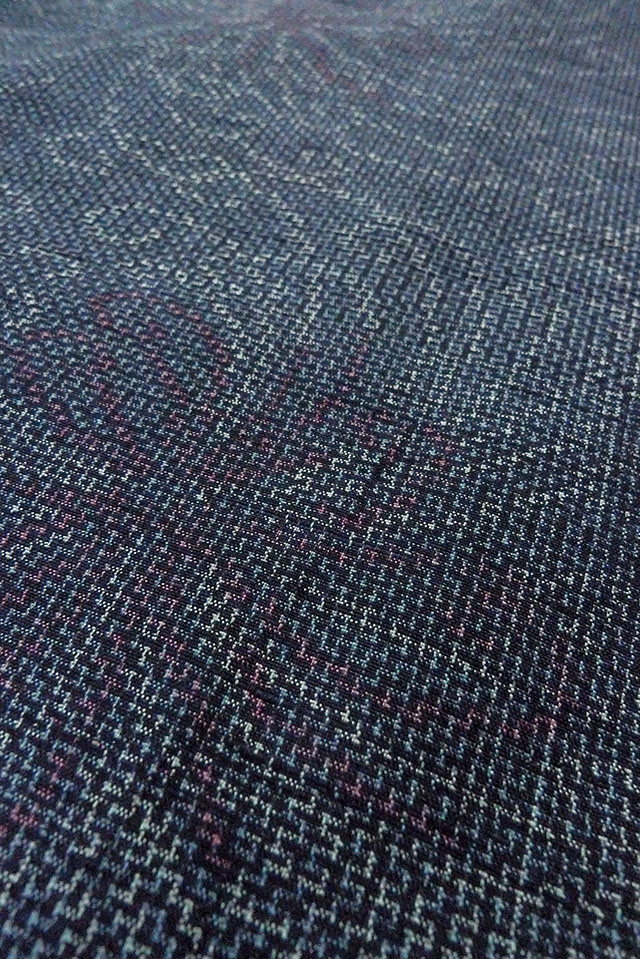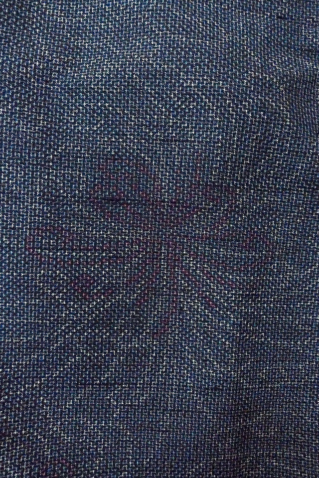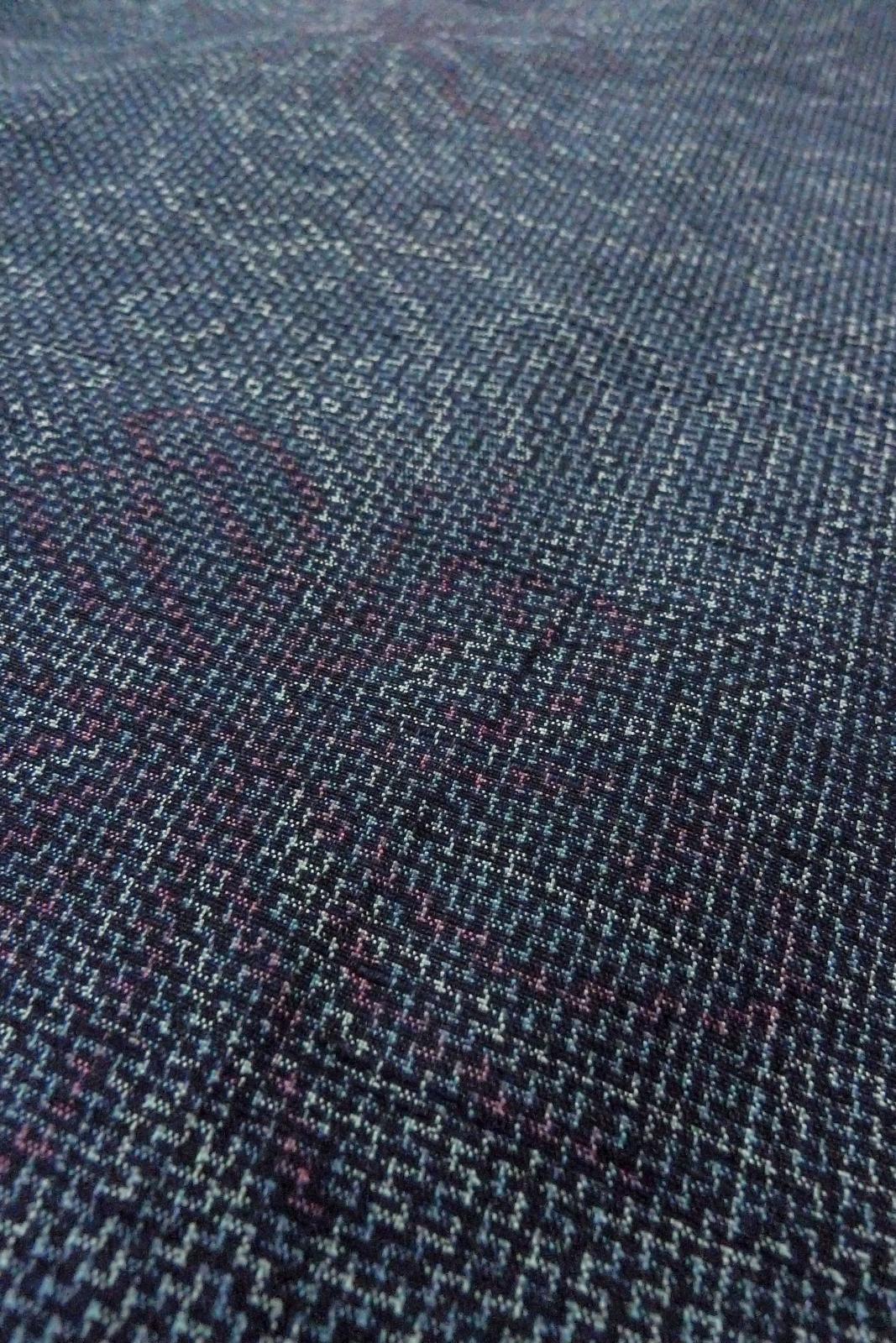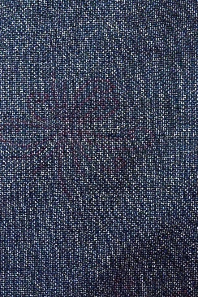 O1126K Used Japanese kimono Pale Navy Blue TSUMUGI pongee for women / Silk. Chrysanthemum (Grade B) [O1126K]