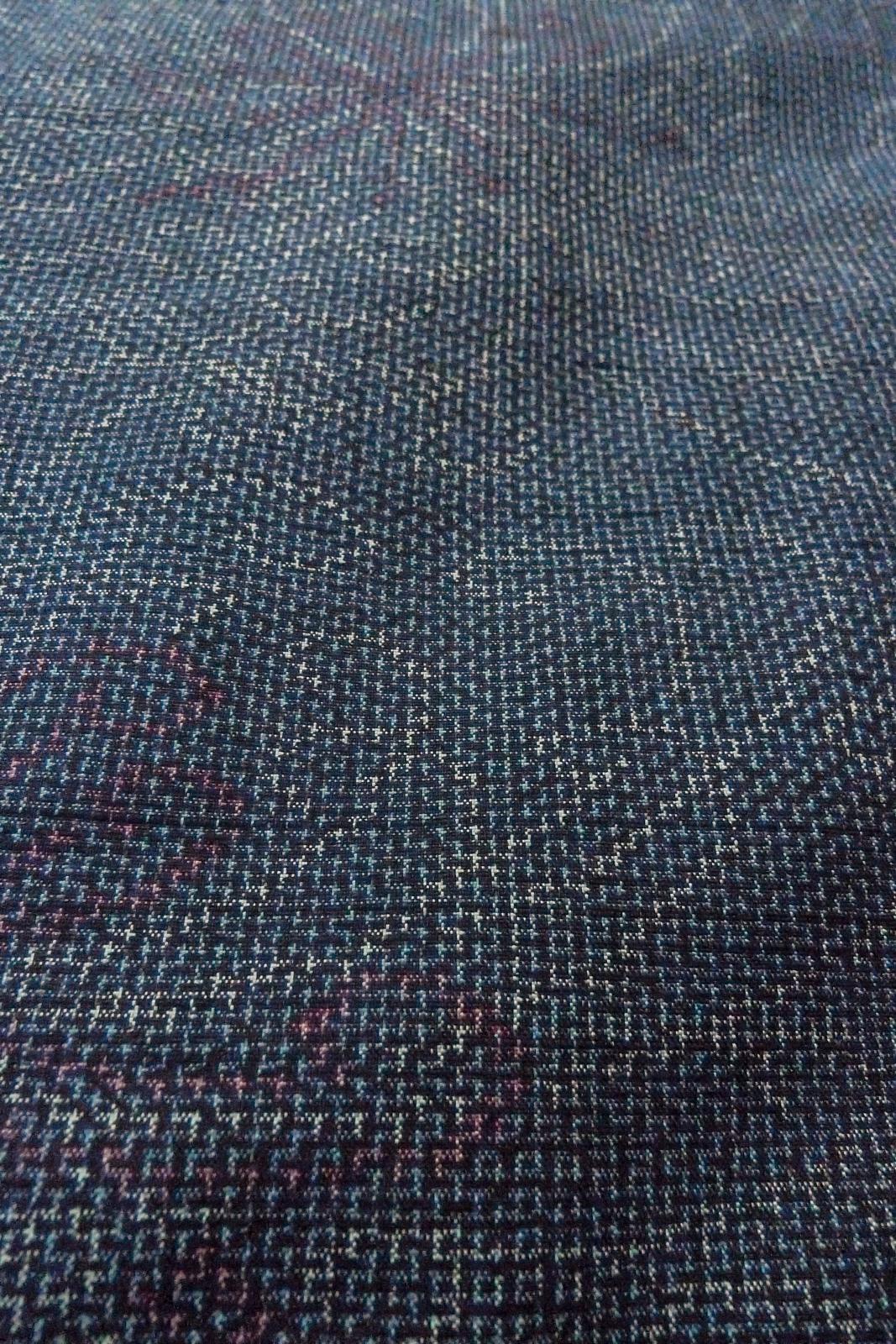 O1126K Used Japanese kimono Pale Navy Blue TSUMUGI pongee for women / Silk. Chrysanthemum (Grade B)