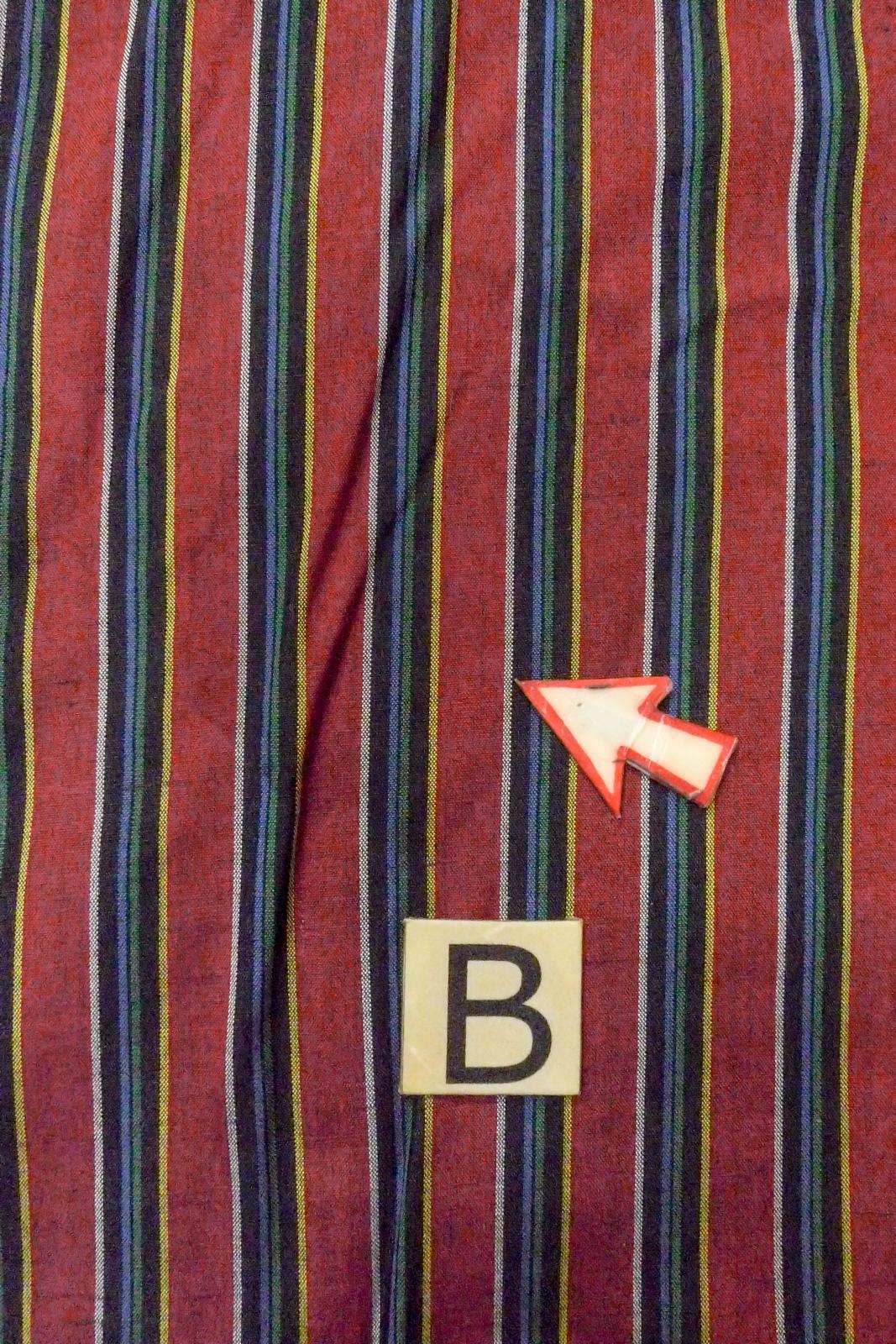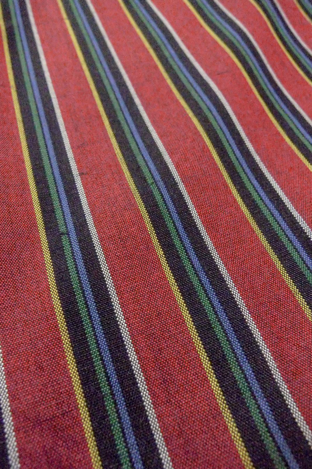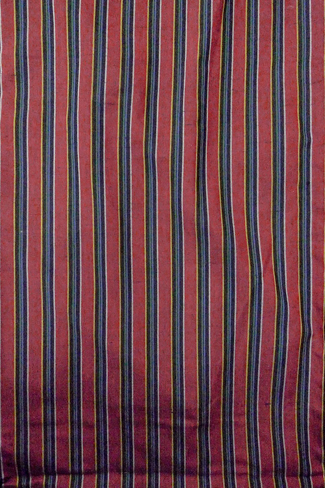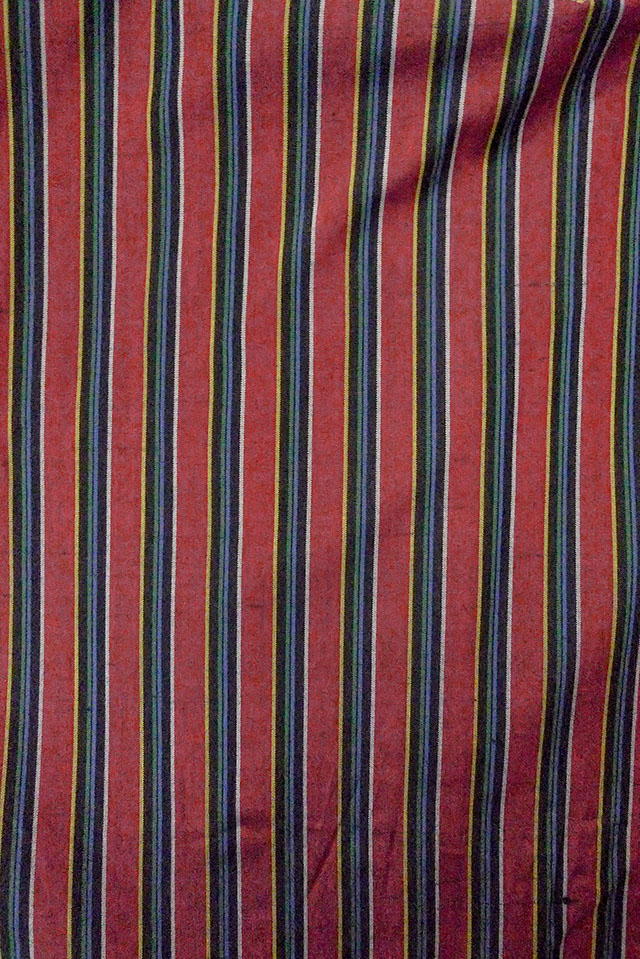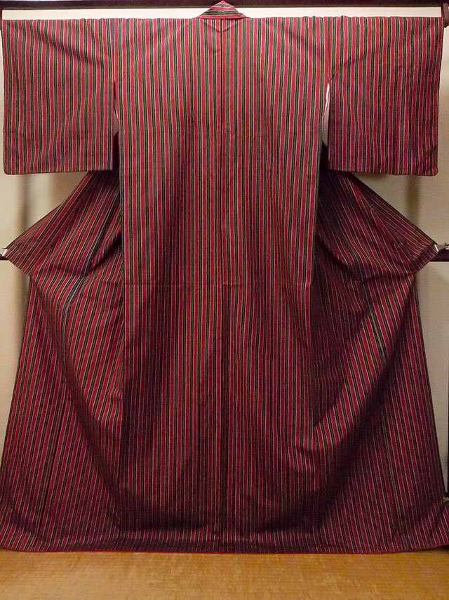 O1126R Vintage Japanese kimono Dark Red TSUMUGI pongee for women / Silk. Stripes (Grade B)