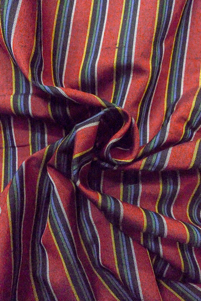 O1126R Vintage Japanese kimono Dark Red TSUMUGI pongee for women / Silk. Stripes (Grade B) [O1126R]