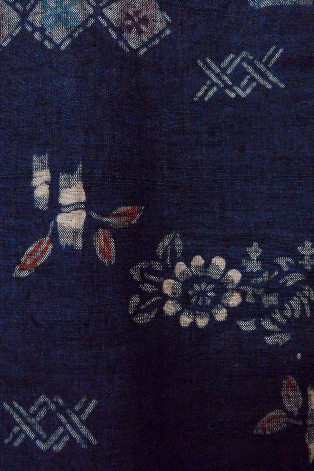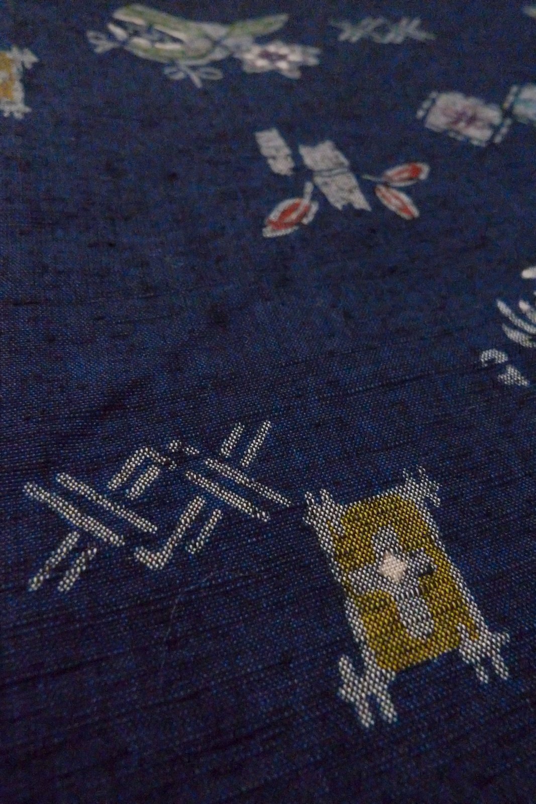 Mint O1126T Used Japanese kimono Indigo Blue TSUMUGI pongee for women / Silk. Flower (Grade A)