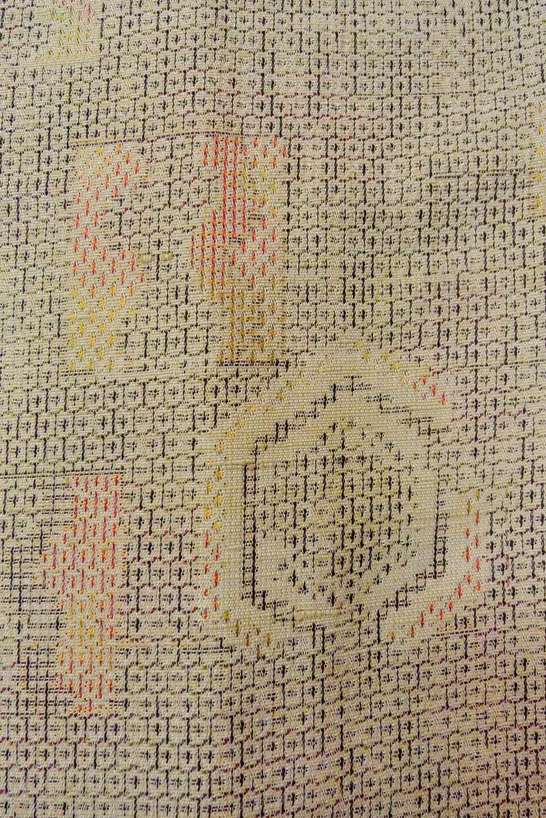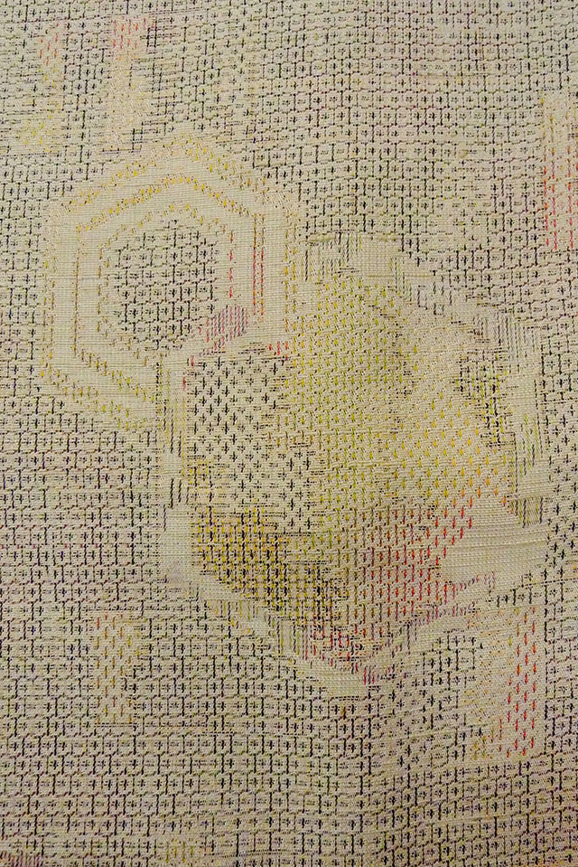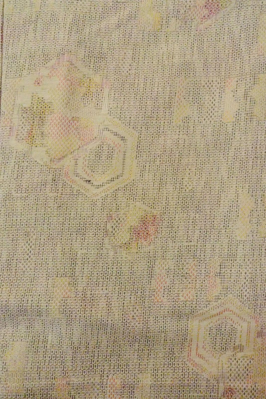 O1126V Vintage Japanese kimono Beige TSUMUGI pongee for women / Silk. Tortoise-shell pattern(Hexagonal pattern) (Grade B) [O1126V]