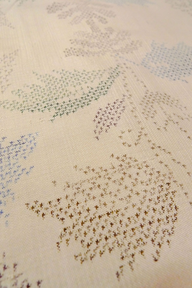 O1126Y Vintage Japanese kimono Off White TSUMUGI pongee for women / Silk. Cross (Grade B) [O1126Y]