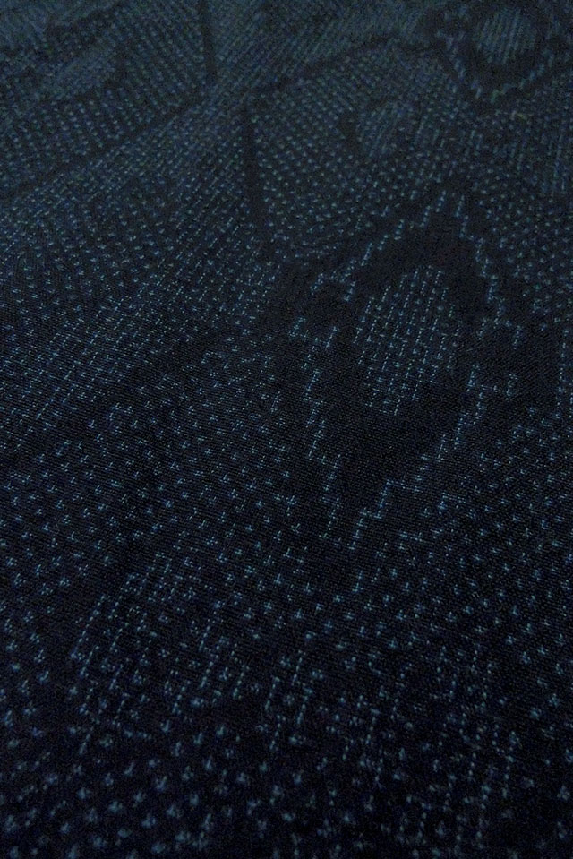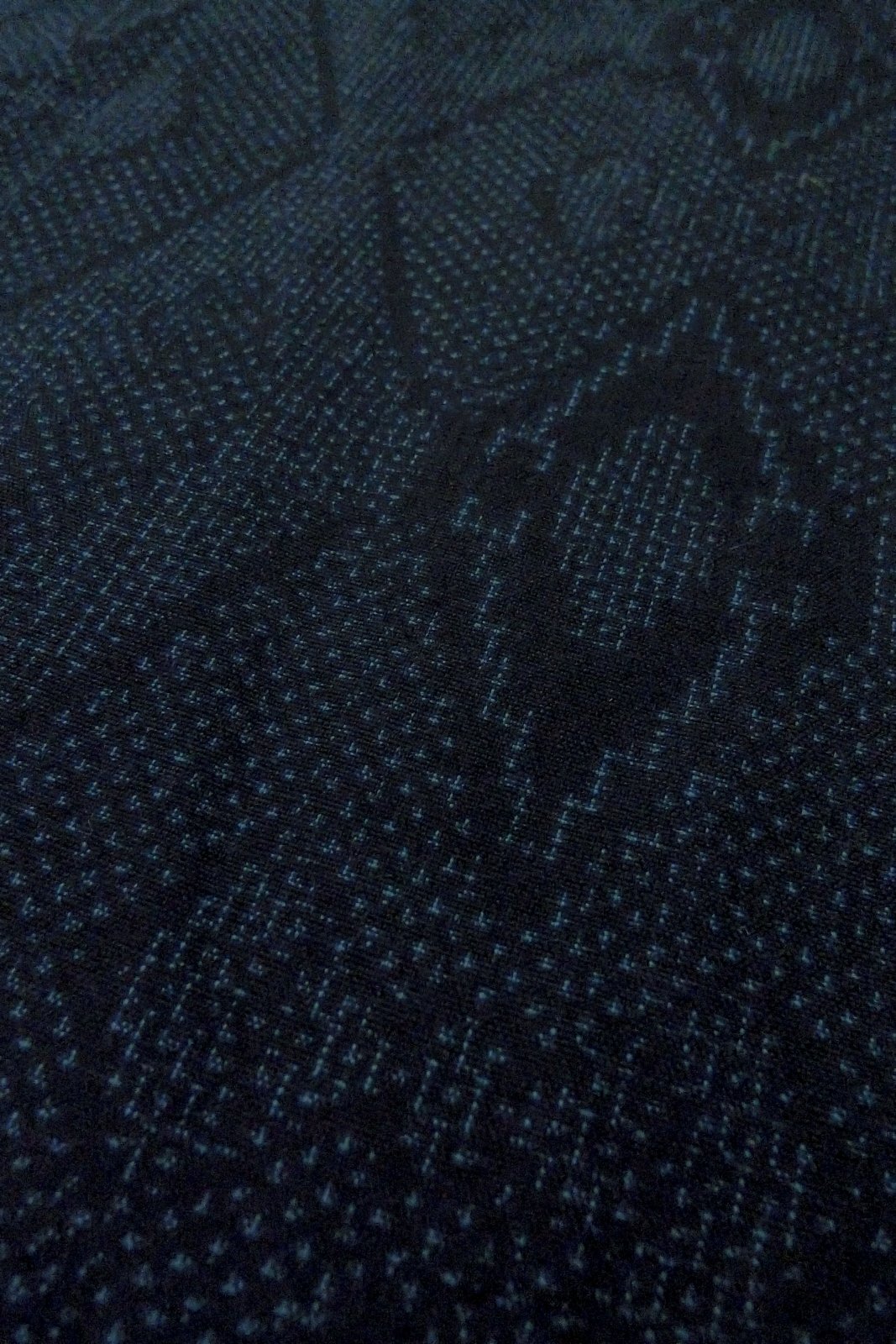 Mint O1209B Vintage Japanese kimono Dark Navy Blue TSUMUGI pongee for women / Silk. Dapple pattern (Grade A) [O1209B]