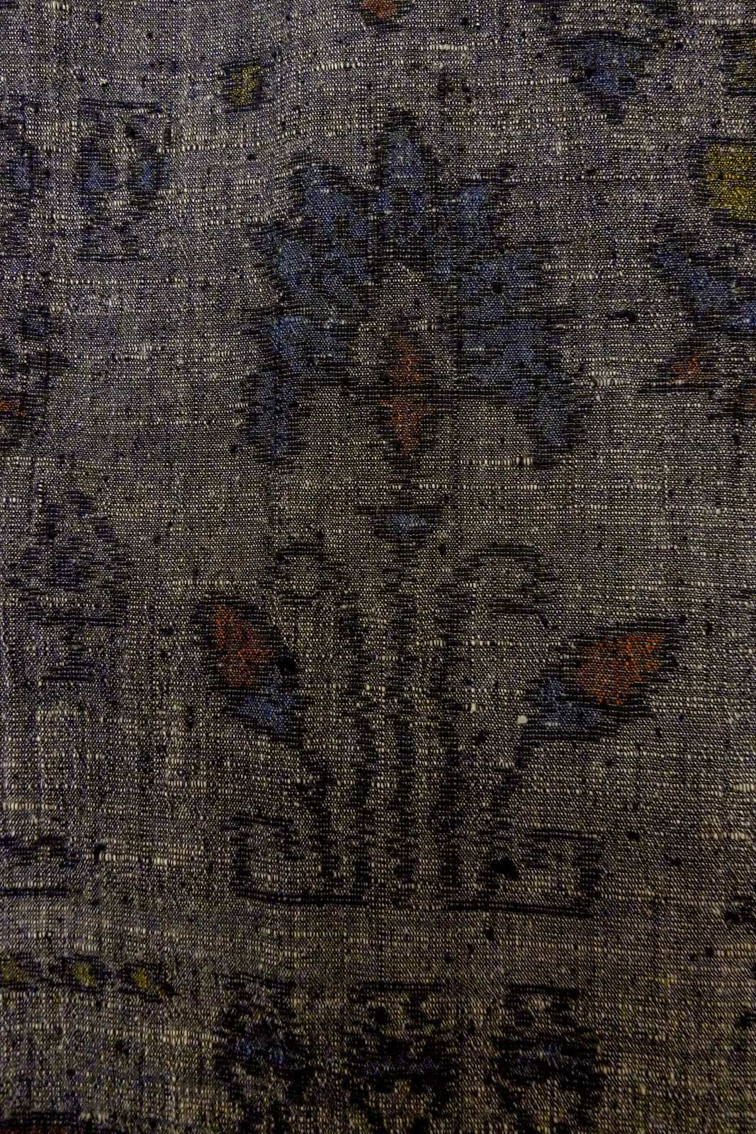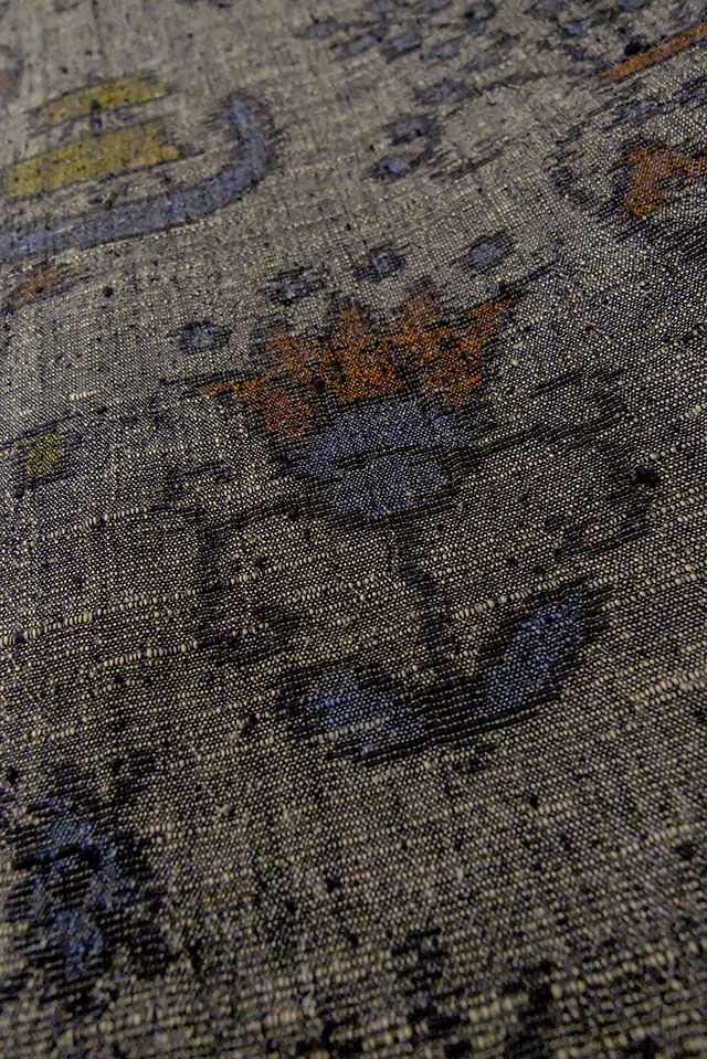O1209Z Vintage Japanese kimono Dark Gray TSUMUGI pongee for women / Silk. Flower (Grade C) [O1209Z]