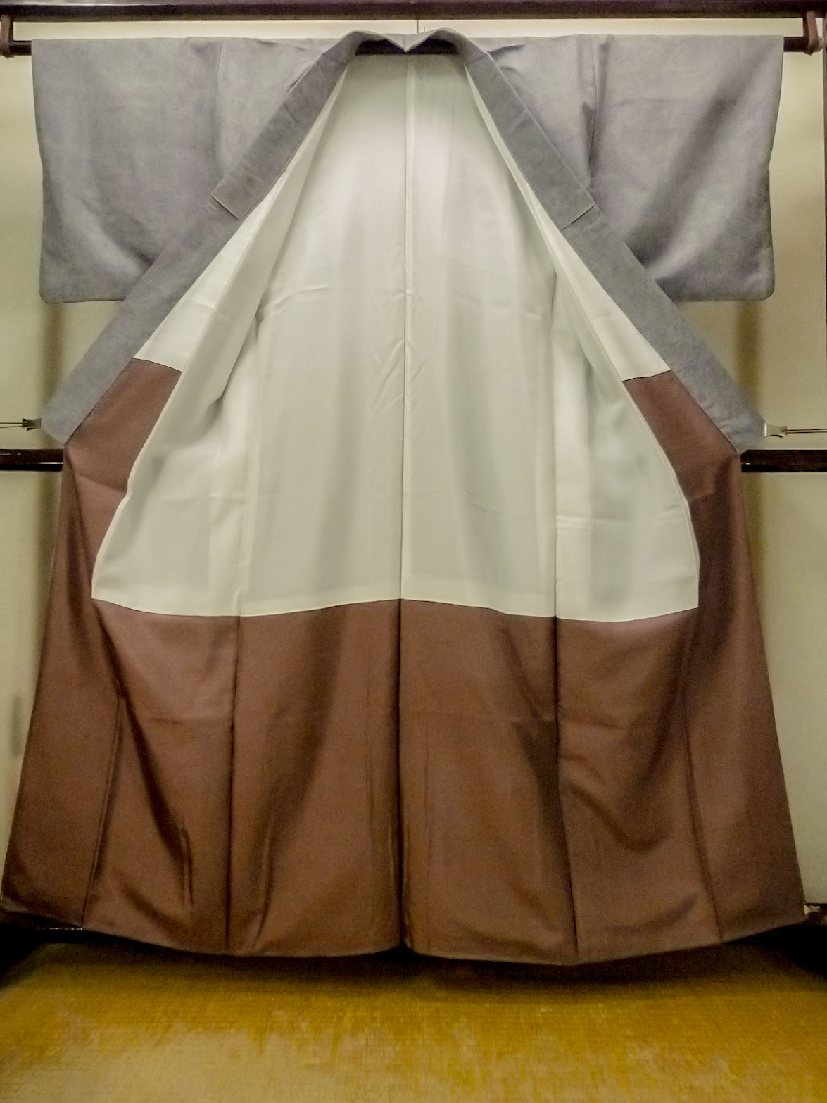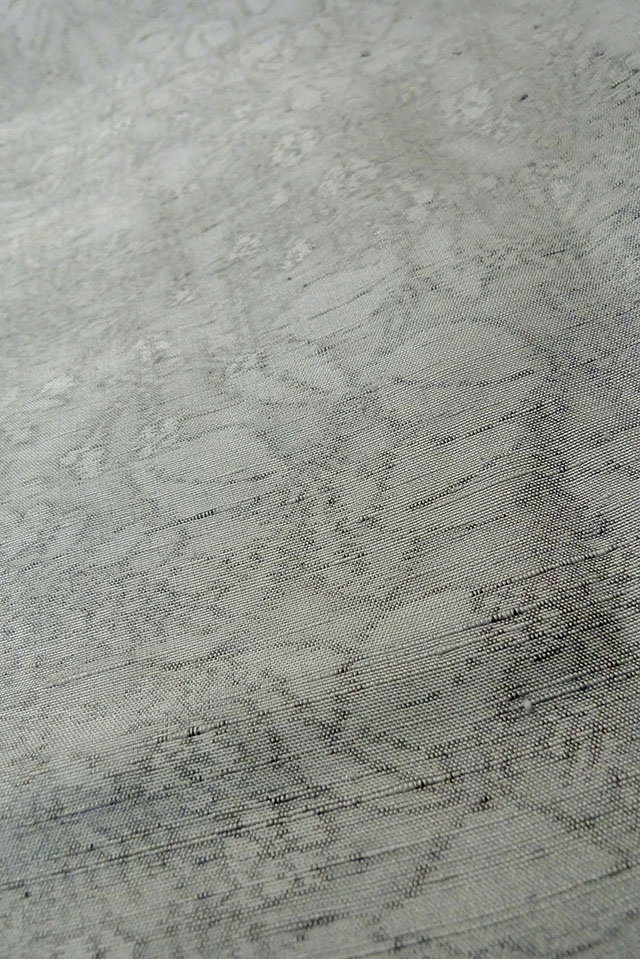 O1210A Vintage Japanese kimono Light Gray TSUMUGI pongee for women / Silk. Flower (Grade B)