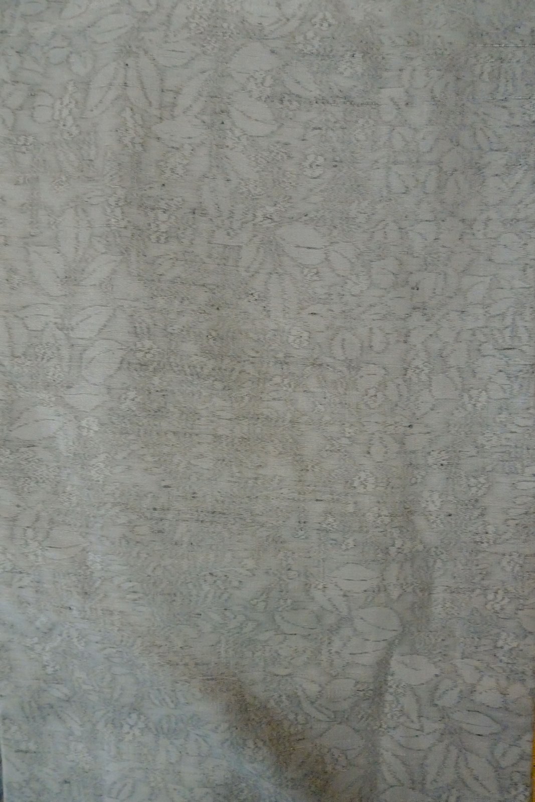 O1210A Vintage Japanese kimono Light Gray TSUMUGI pongee for women / Silk. Flower (Grade B) [O1210A]