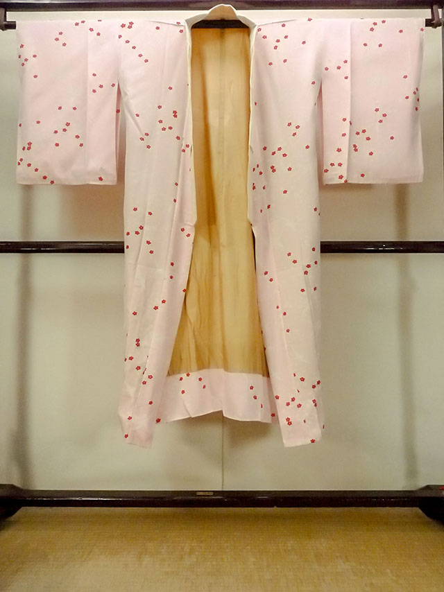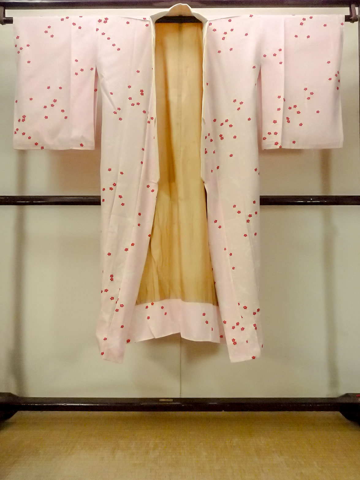 O1210C Vintage Japanese kimono Pink JUBAN undergarment for women / Silk. Flower (Grade B)