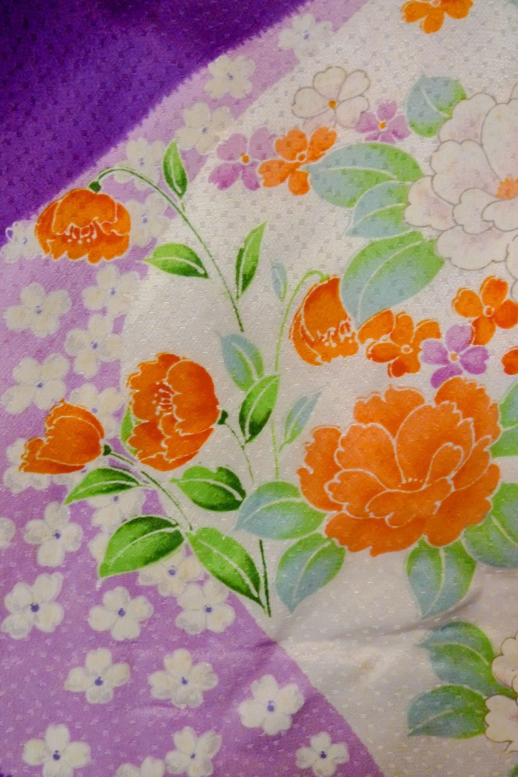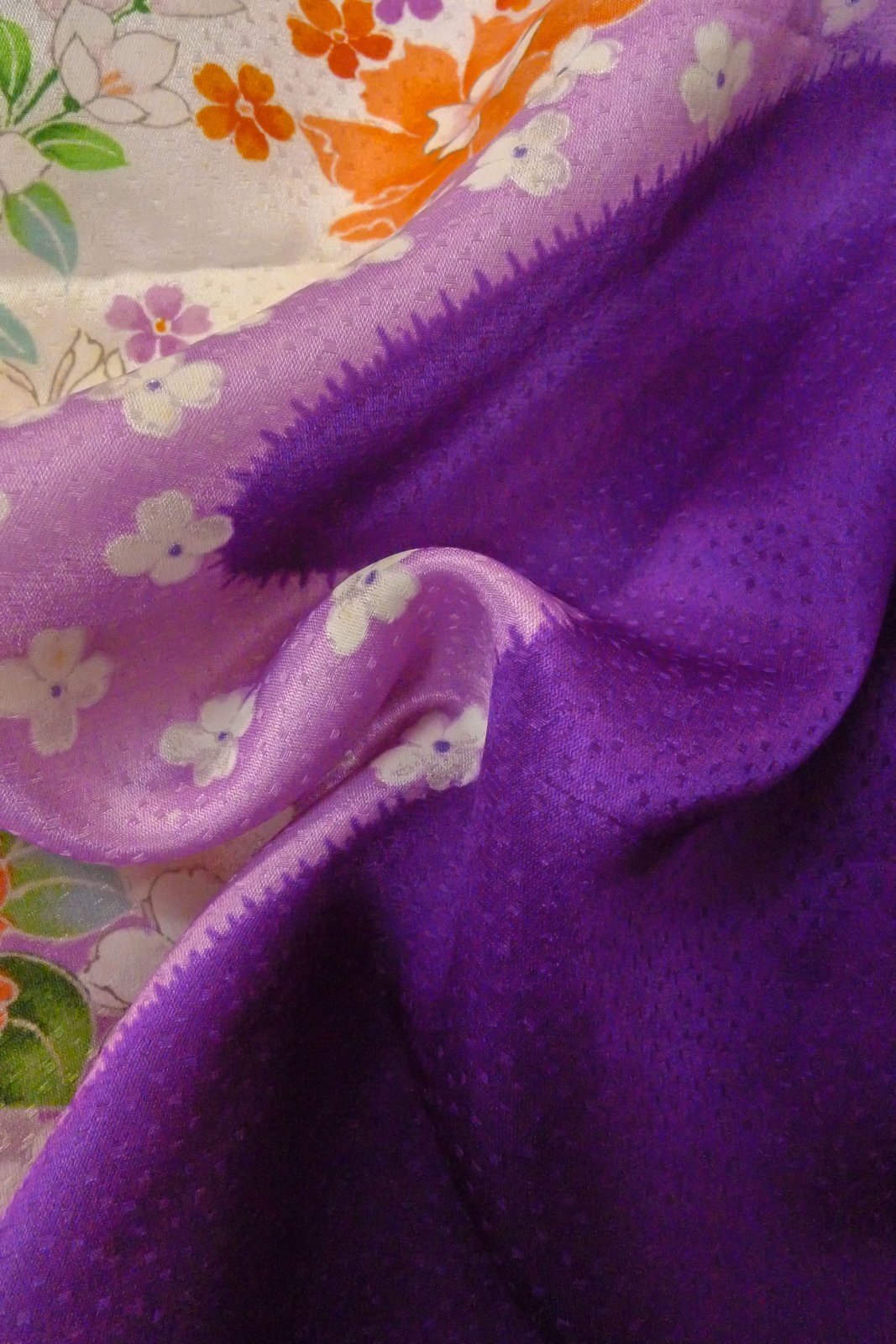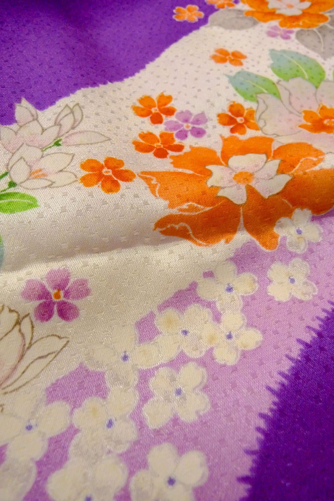 O1225D Vintage Japanese kimono Purple Kimono for Girls for women / Synthetic. Peony (Grade C)