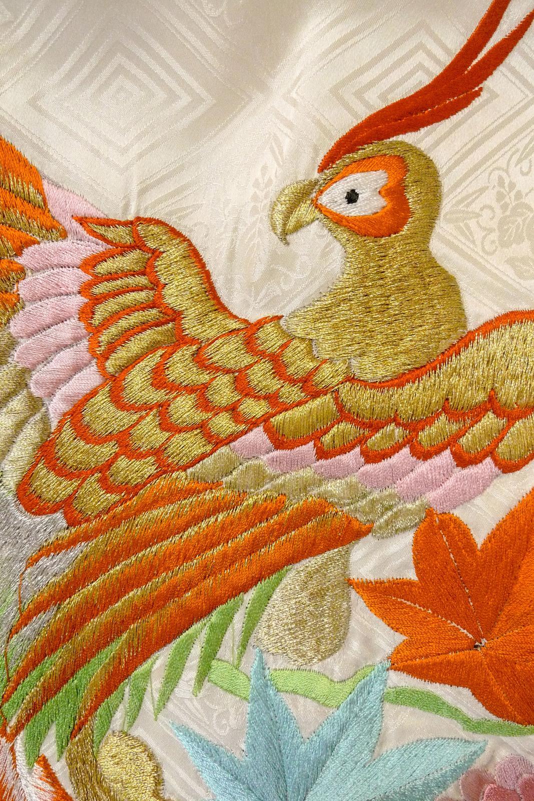 O1225F Vintage Japanese kimono White Kimono for Girls for women / Silk. Chrysanthemum (Grade D)