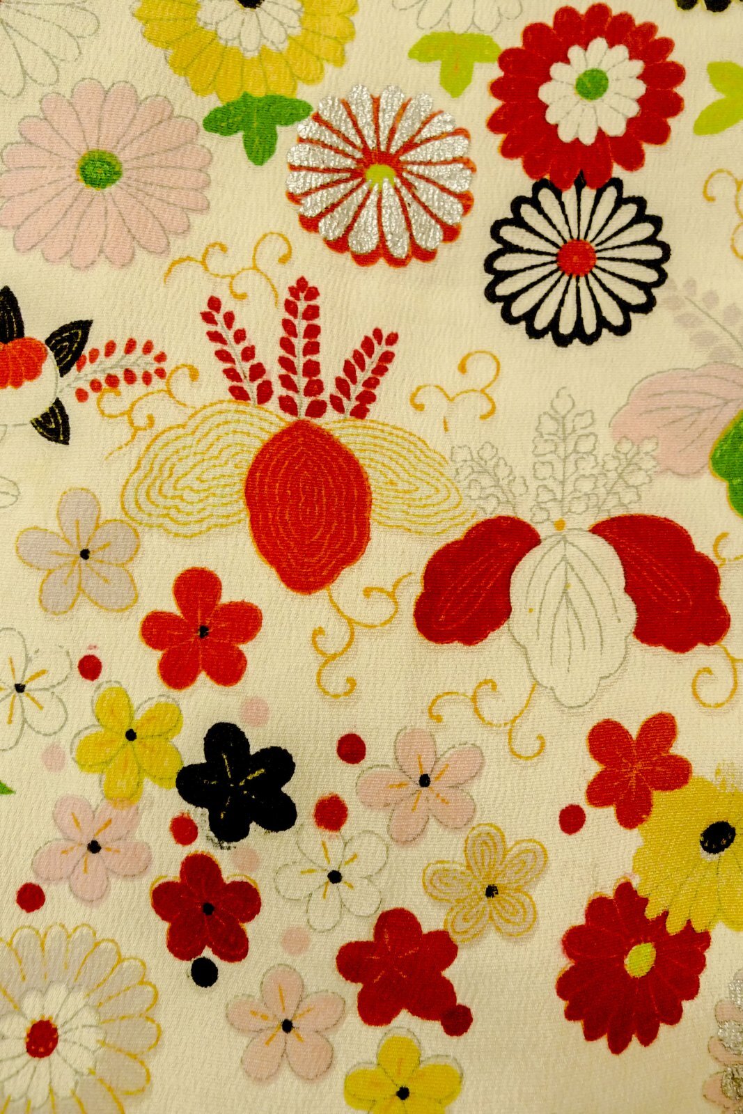 O1225P Vintage Japanese kimono Ivory Kimono for Girls for women / Silk. Chrysanthemum (Grade C)