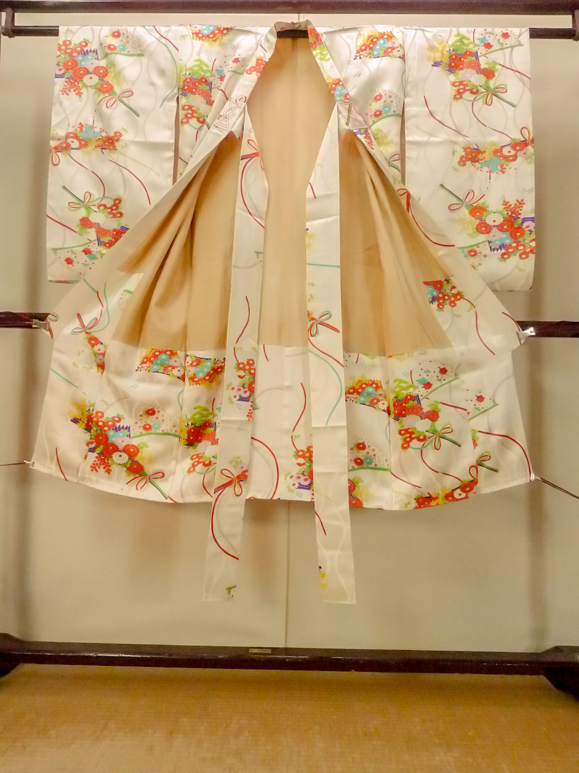 O1225V Vintage Japanese kimono Shiny White Kimono for Girls for women / Silk. Chrysanthemum (Grade B)