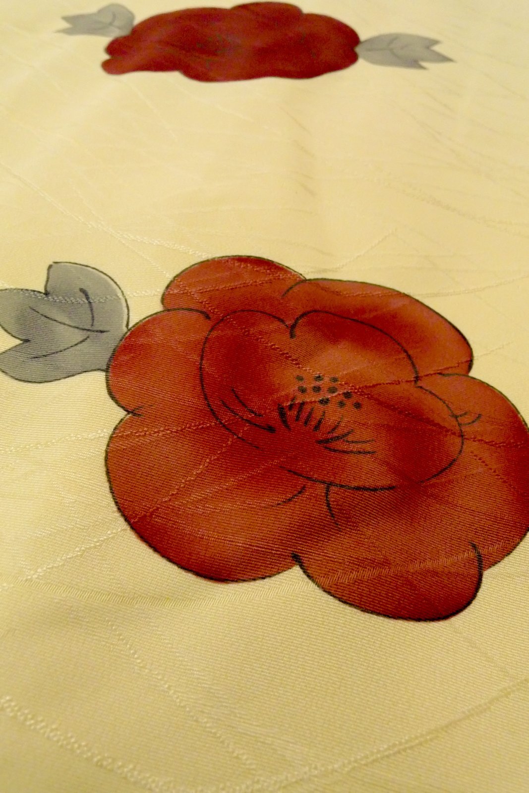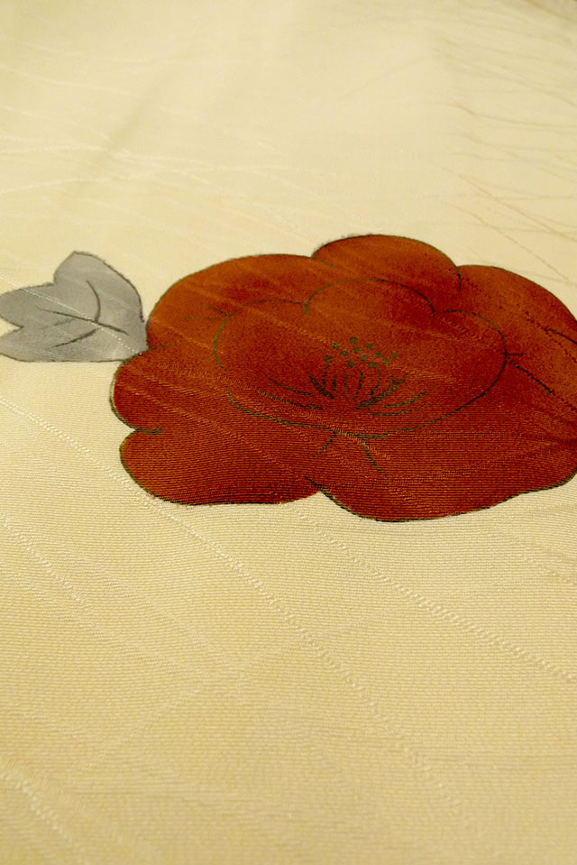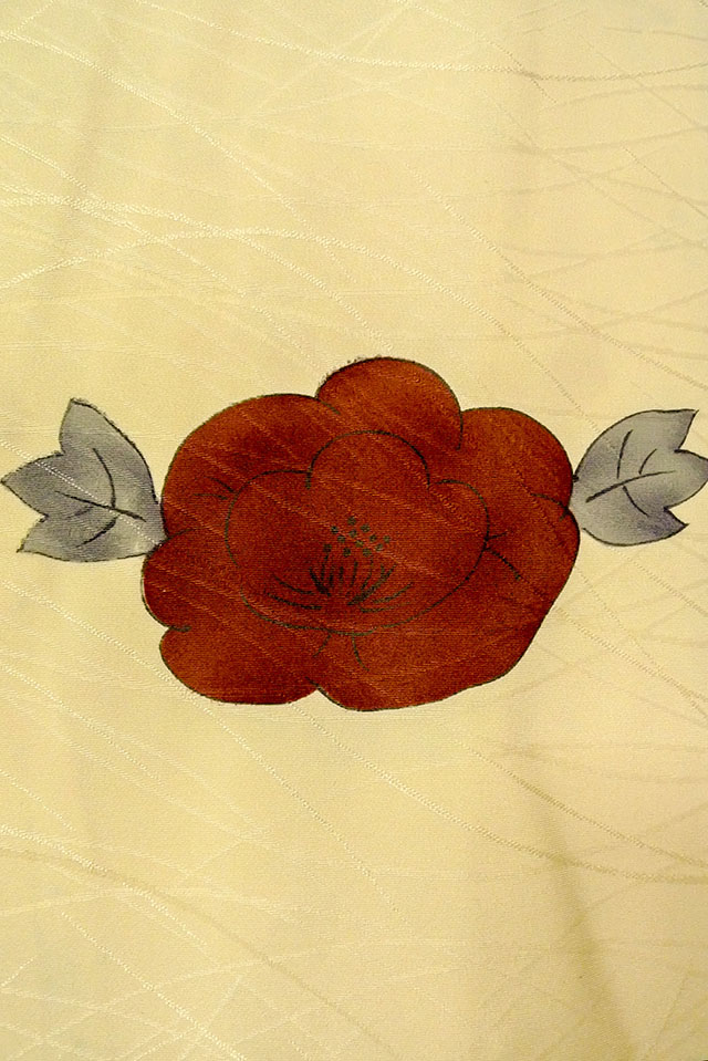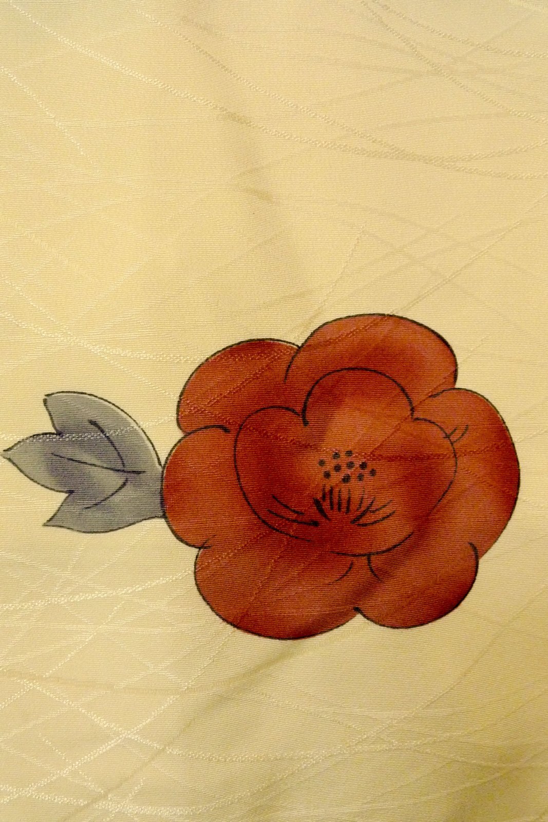 Kimonoya Japan : P0109K Vintage Japanese kimono Shiny Ivory HAORI short jacket for women / Silk. Camellia (Grade B) / Haoris