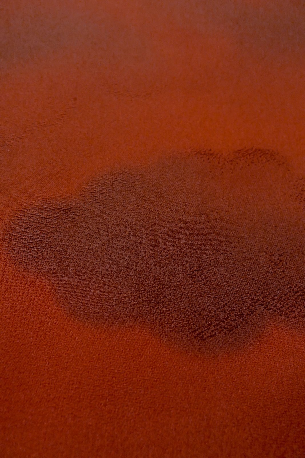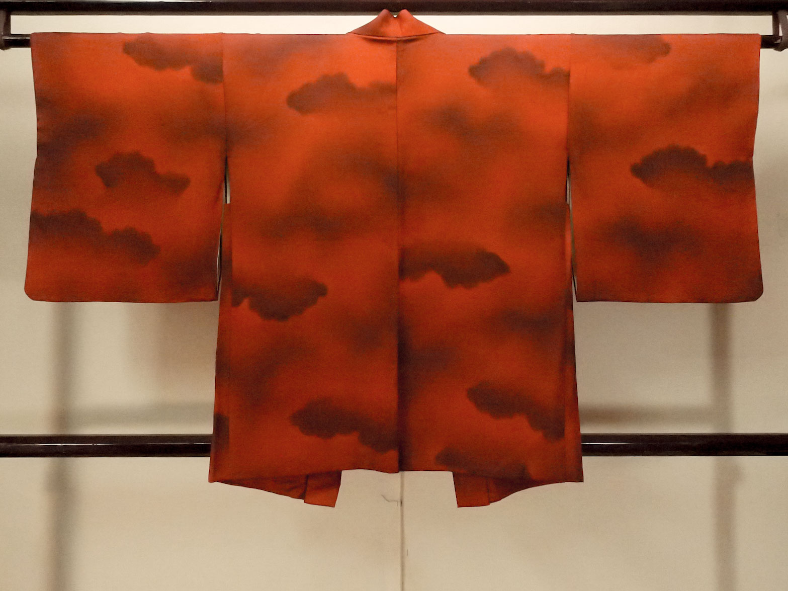 P0109S Vintage Japanese kimono Vivid Vermilion HAORI short jacket for women / Silk. Cloud (Grade B) [P0109S]