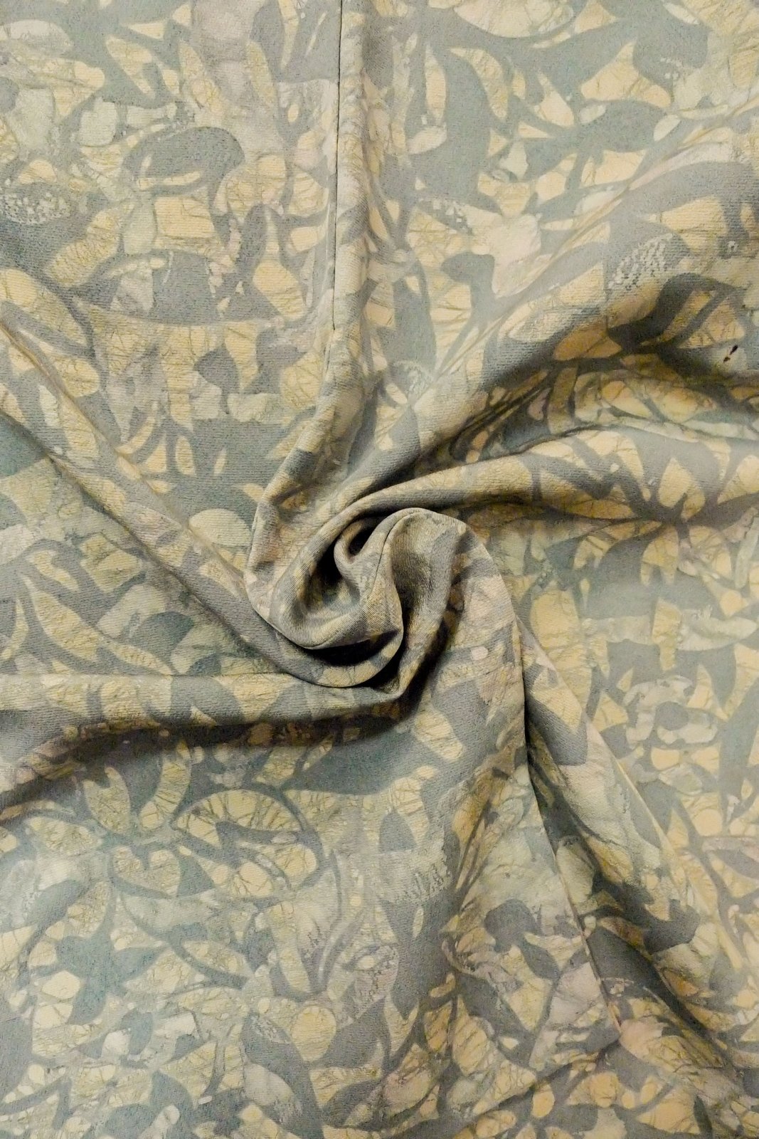 Kimonoya Japan : P0109W Vintage Japanese kimono Light Grayish Light Blue HAORI short jacket for women / Silk. Abstract pattern (Grade C) / Haoris
