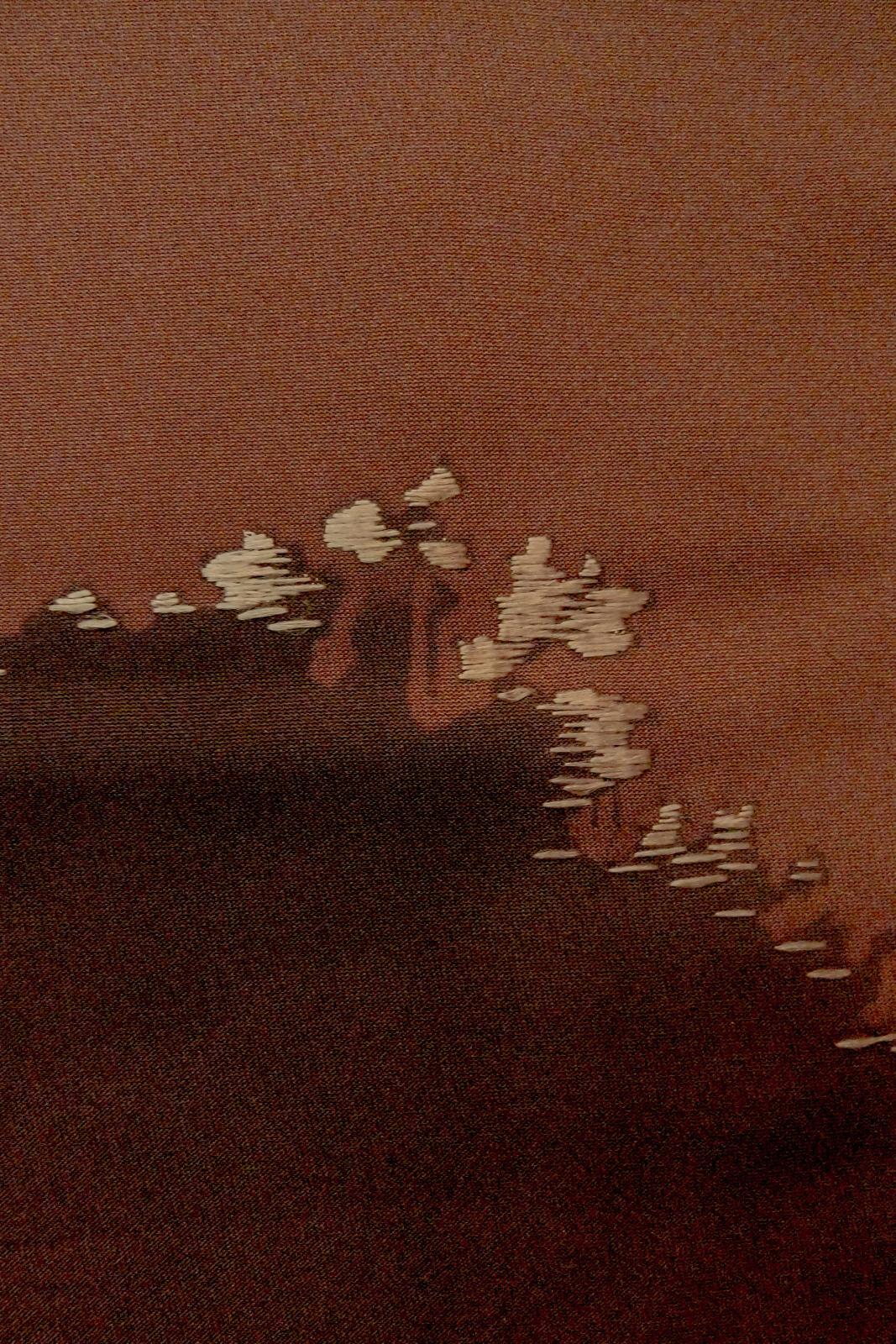 P0109X Vintage Japanese kimono Dark Brownish Dark Red HAORI short jacket for women / Silk. Mountain (Grade B) [P0109X]