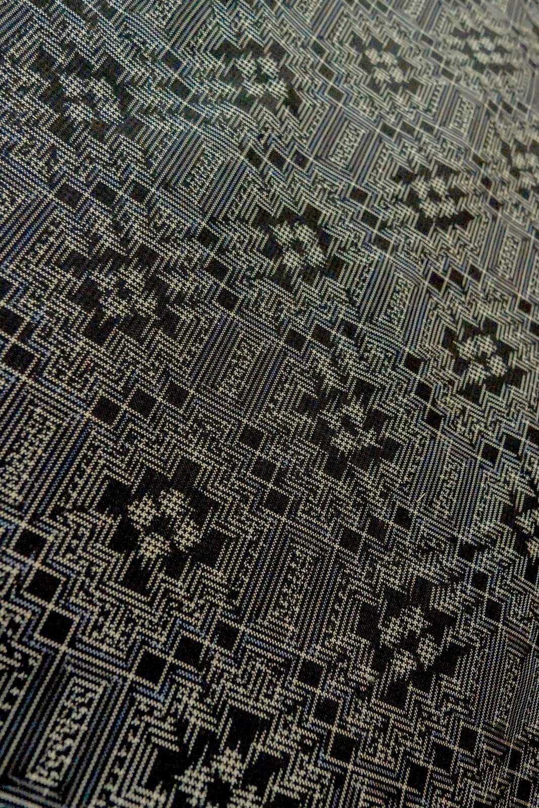 P0110A Vintage Japanese kimono Black HAORI short jacket for women / Silk. Geometrical pattern (Grade B)