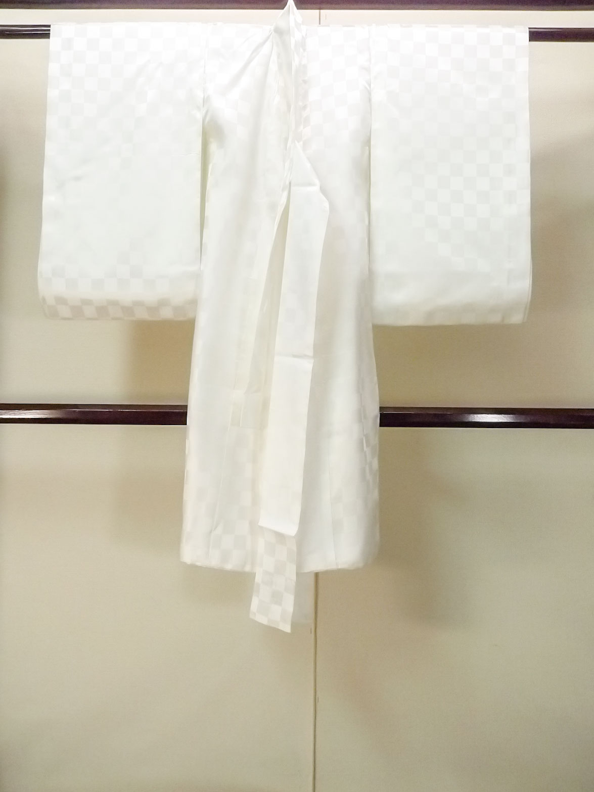 P0123B Vintage Japanese kimono Shiny White Juban for Boys for men / Silk. Plaid Checks, Set with P0123A (Grade D) [P0123B]