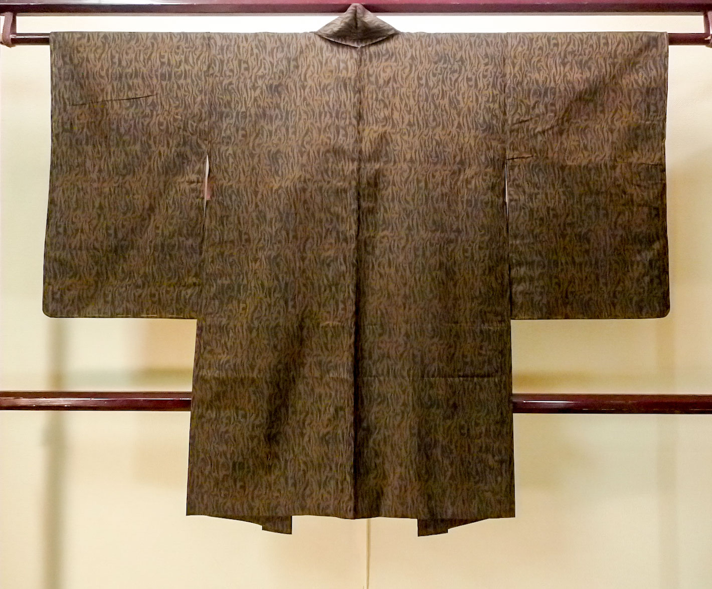 P0123E Vintage Japanese kimono Dark Brown HAORI short jacket for women / Silk. Abstract pattern (Grade A) [P0123E]