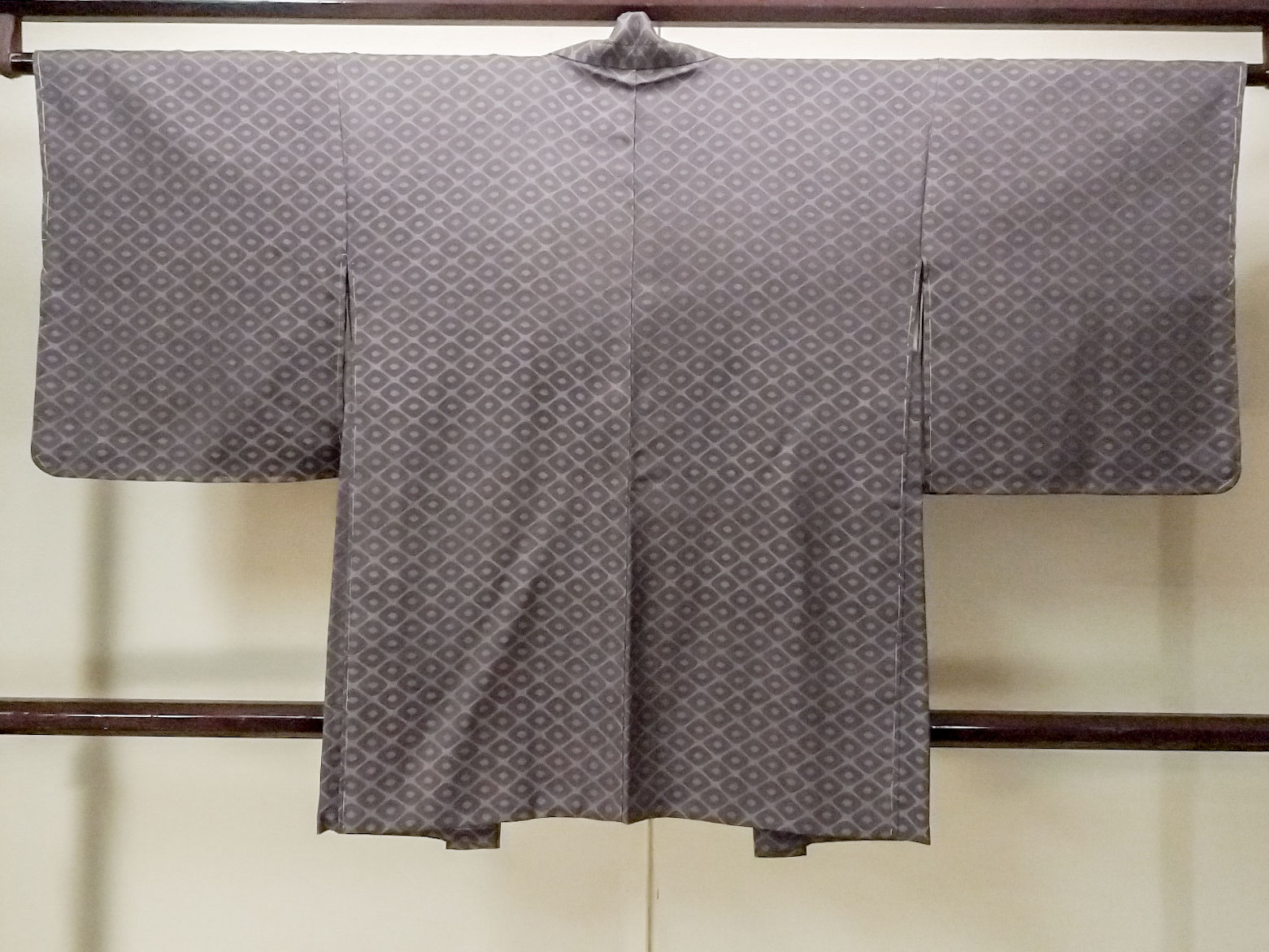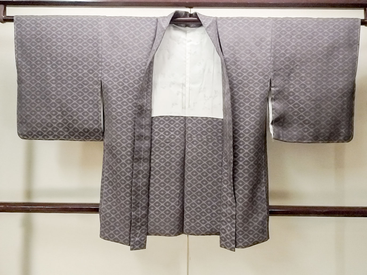 P0123F Vintage Japanese kimono Grayish Pale Purple HAORI short jacket for women / Silk. Lozenges (Grade C) [P0123F]