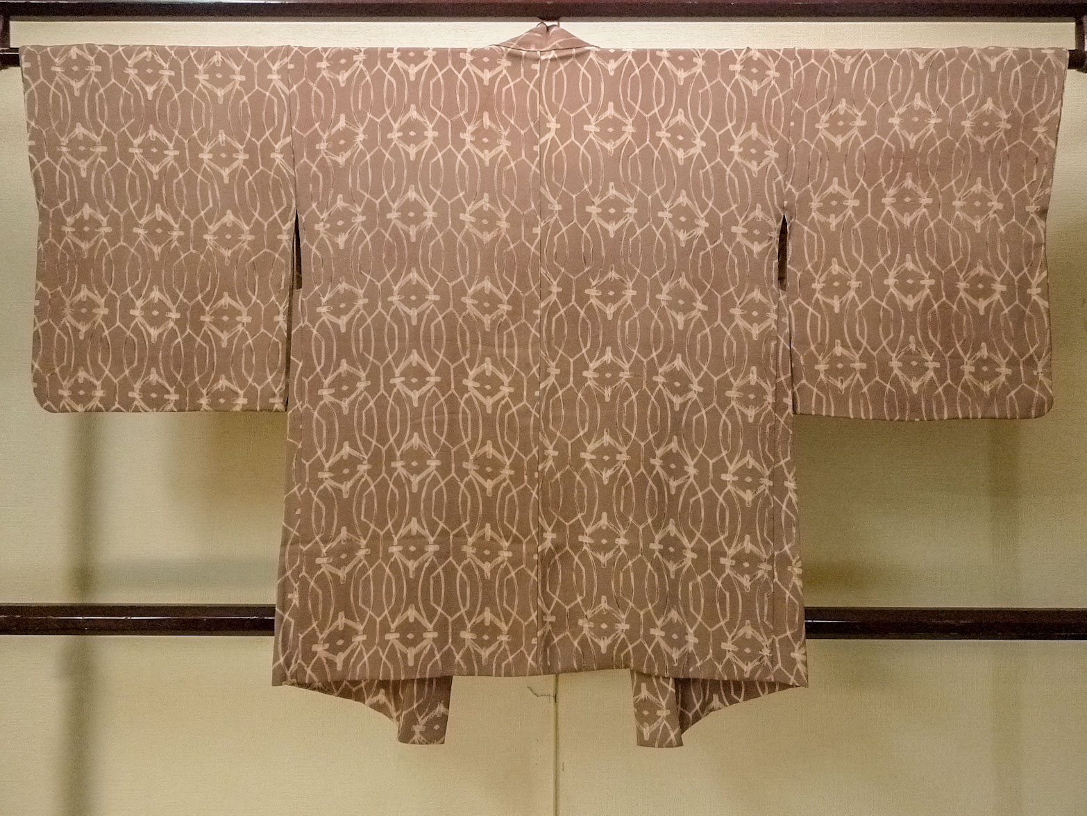 P0123Z Vintage Japanese kimono Pale Brown HAORI short jacket for women / Silk. Abstract pattern (Grade A)