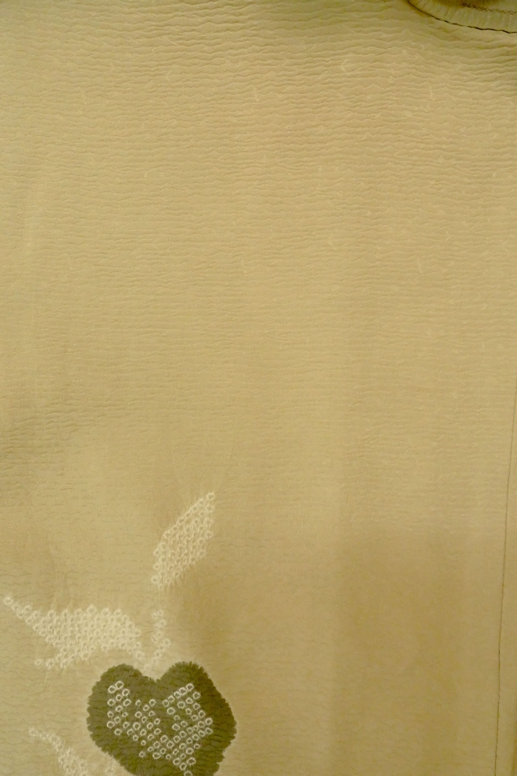 Kimonoya Japan : P0124D Vintage Japanese kimono Pale Beige HAORI short jacket for women / Silk. Leaf (Grade C) / Haoris