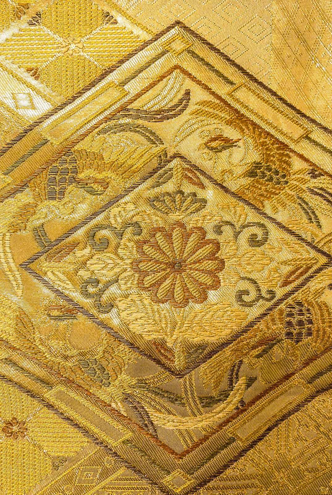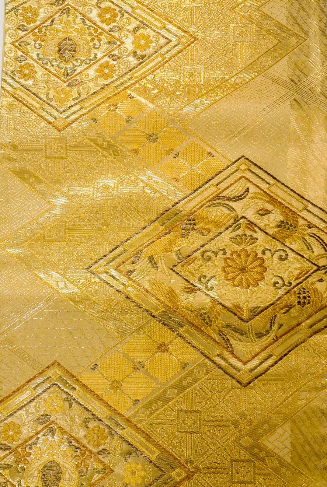 - > P0206Q Vintage Japanese Kimono Shiny Gold FUKURO OBI sash Chrysanthemum Silk. (Grade B)