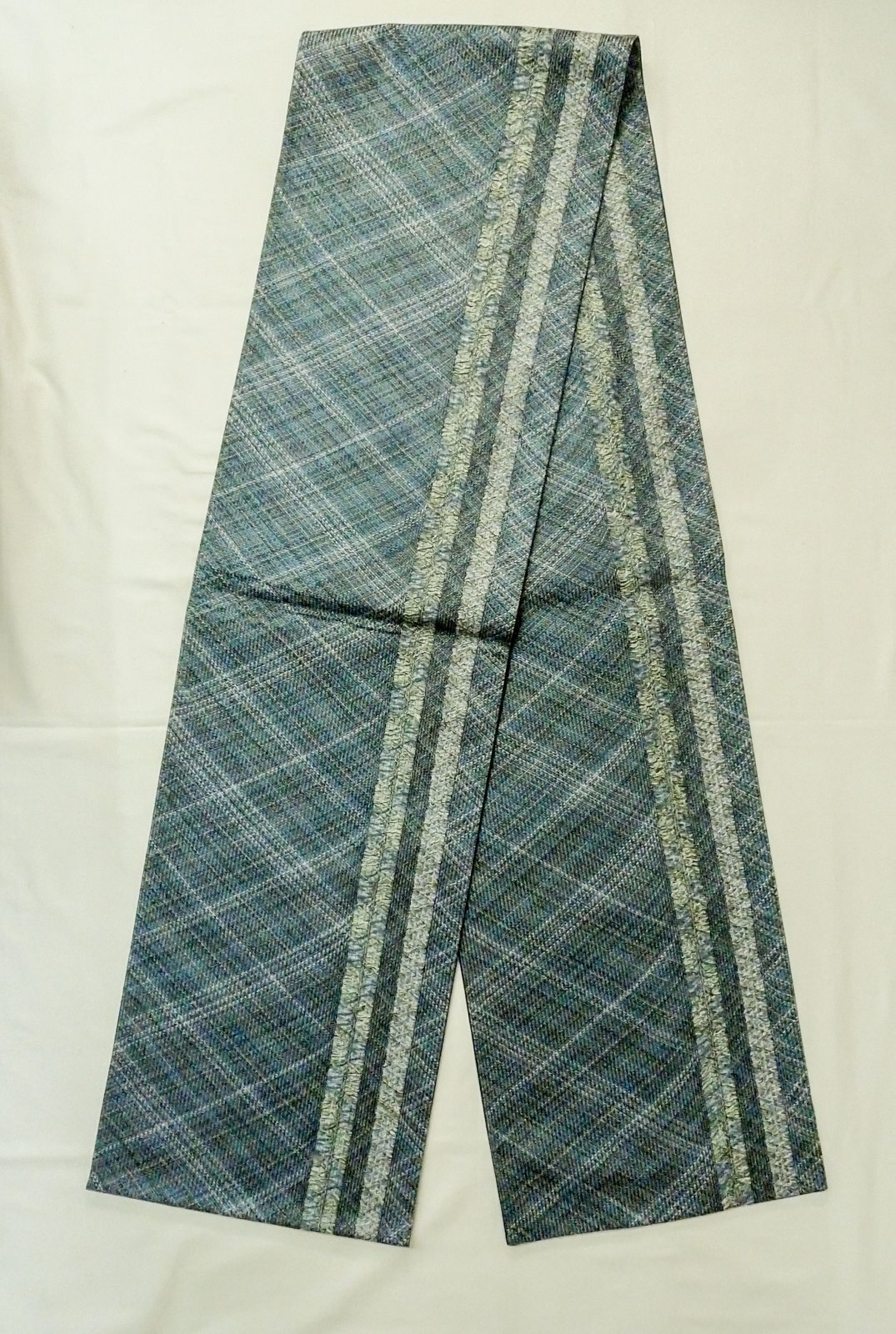 - > Mint P0206S Vintage Japanese Kimono Dark Teal FUKURO OBI sash Stripes Silk. (Grade A)