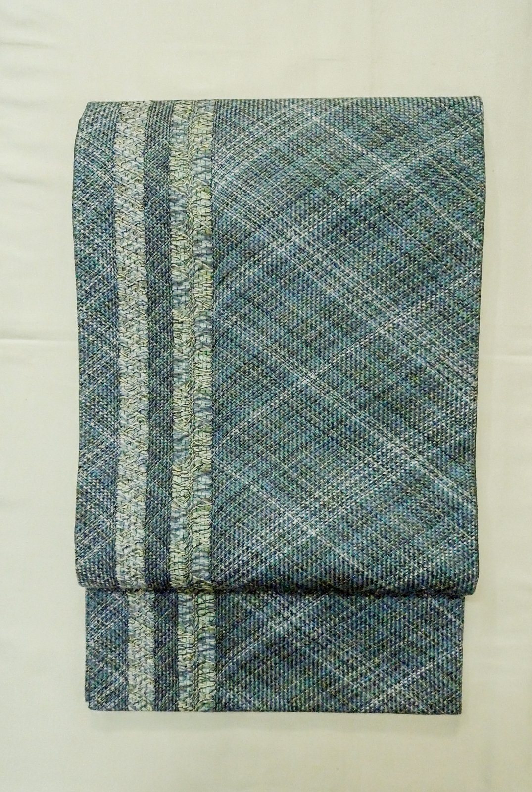 Mint P0206S Vintage Japanese Kimono Dark Teal FUKURO OBI sash Stripes Silk. (Grade A) [P0206S]