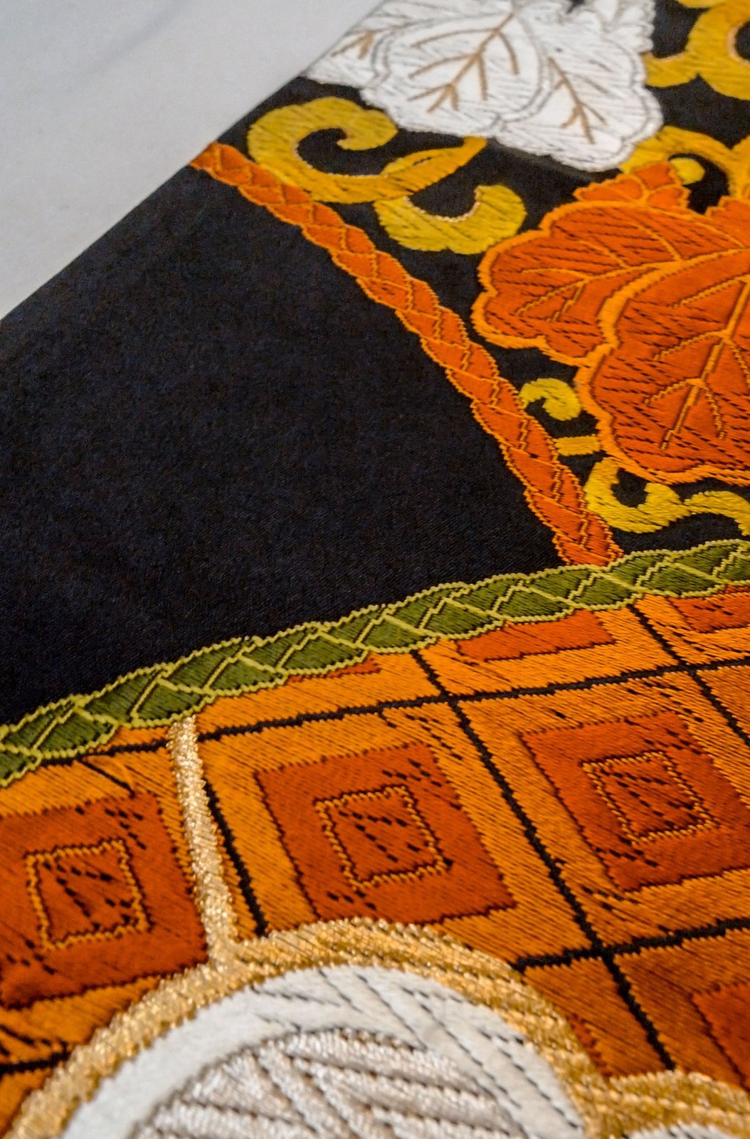 - > P0206U Vintage Japanese Kimono Black FUKURO OBI sash Chrysanthemum Silk. (Grade A)