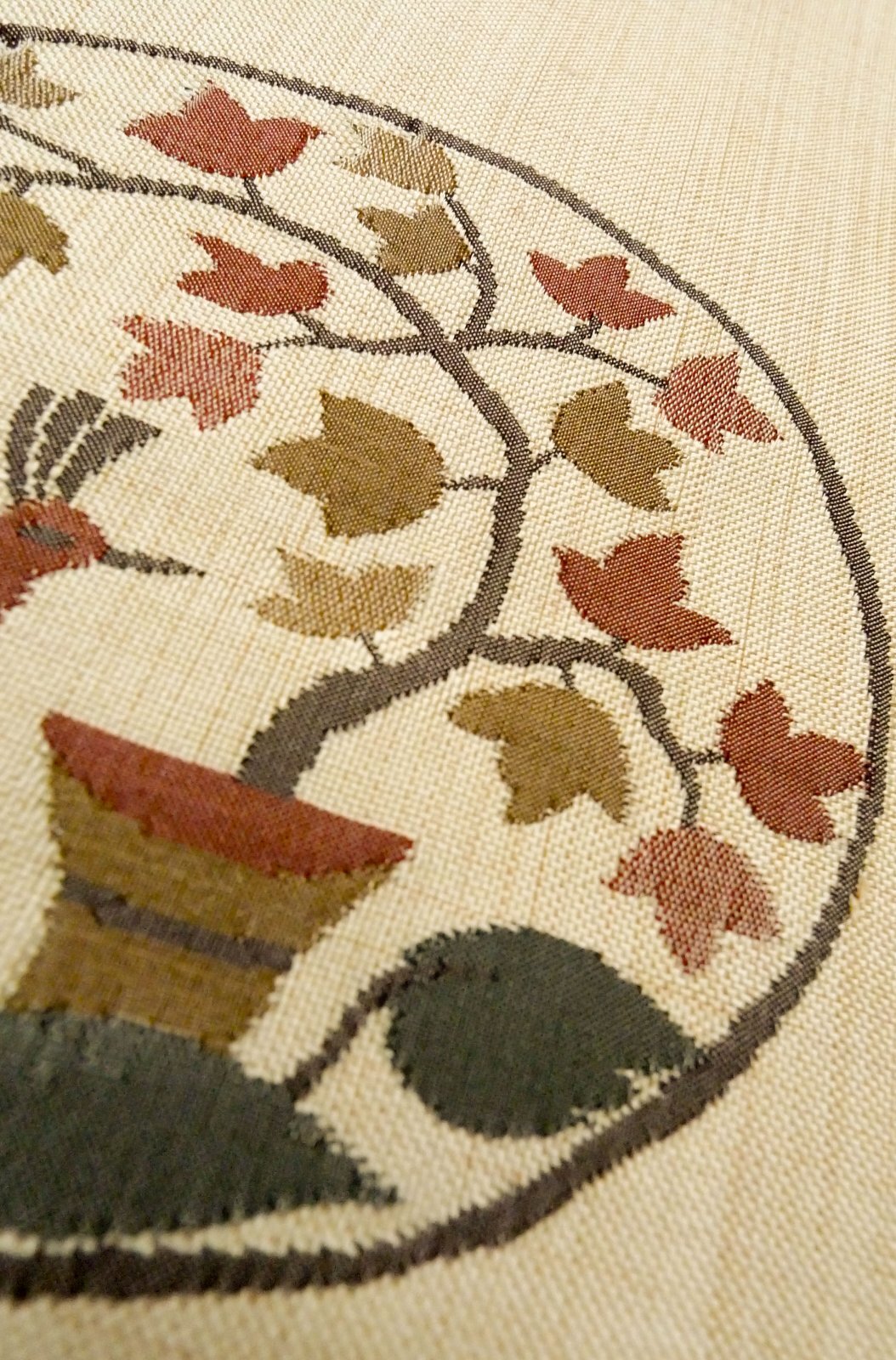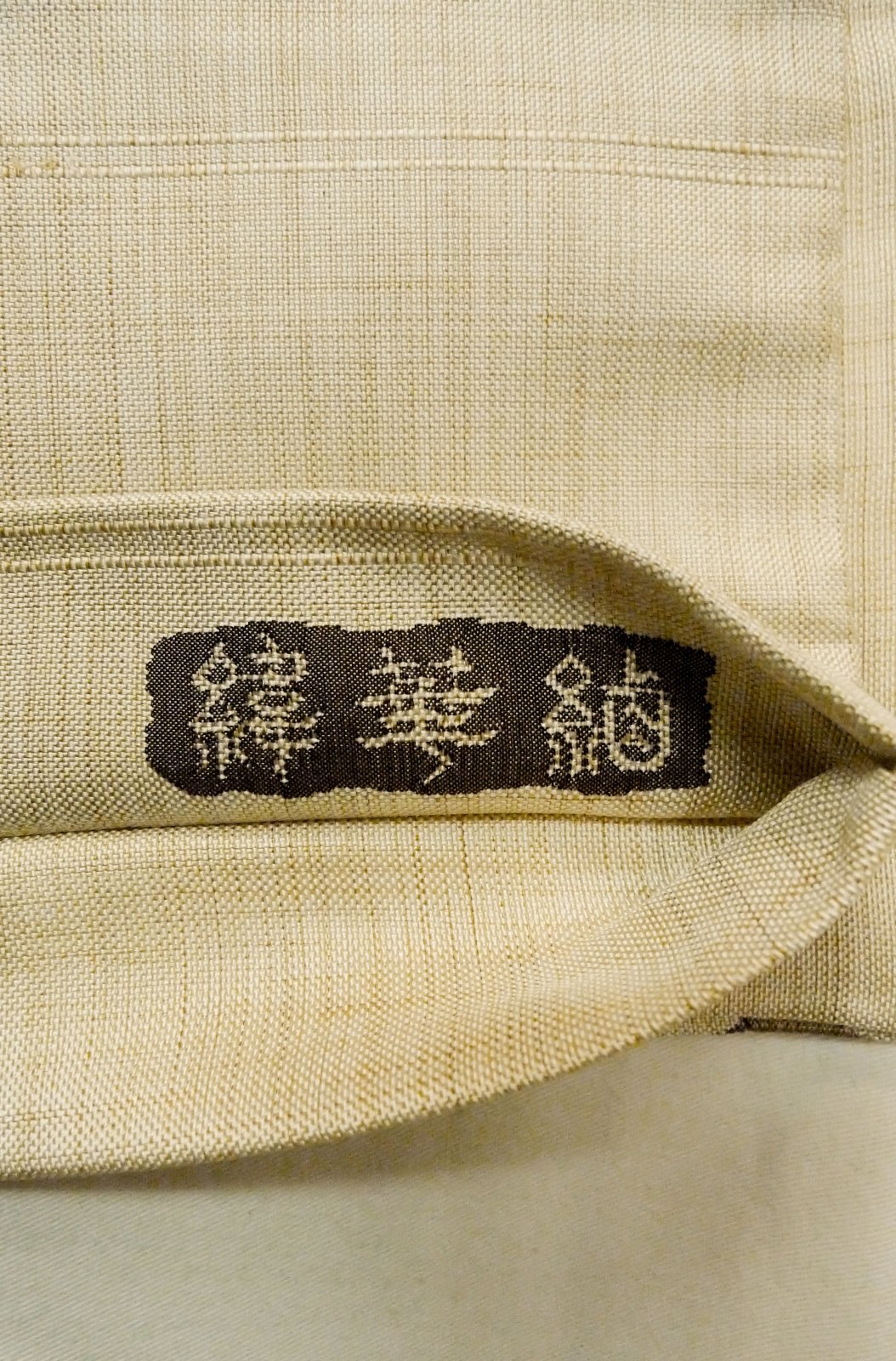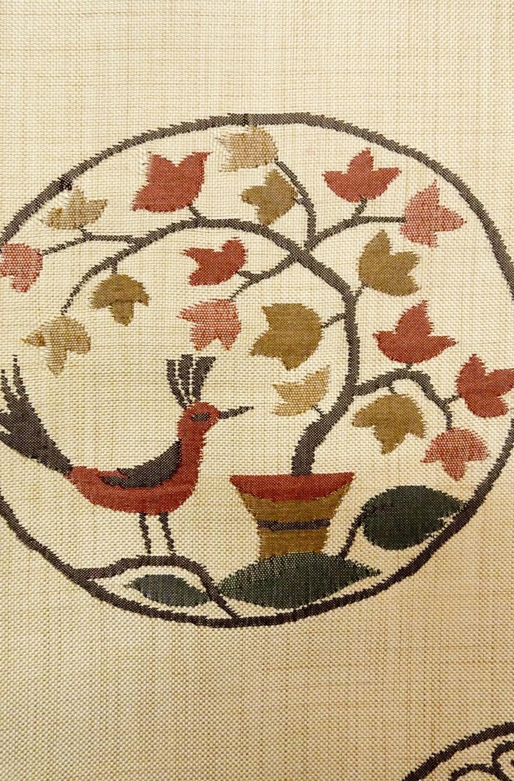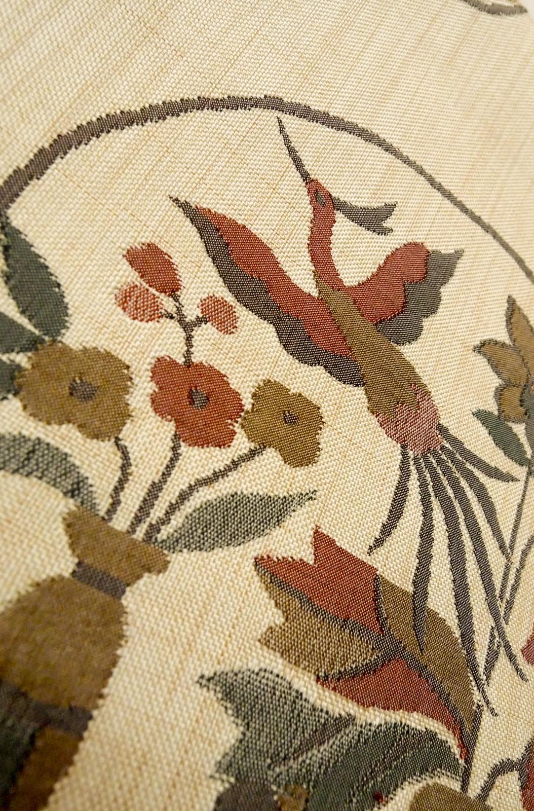 P0206Y Vintage Japanese Kimono Pale Ivory FUKURO OBI sash Flower Silk. (Grade A) [P0206Y]