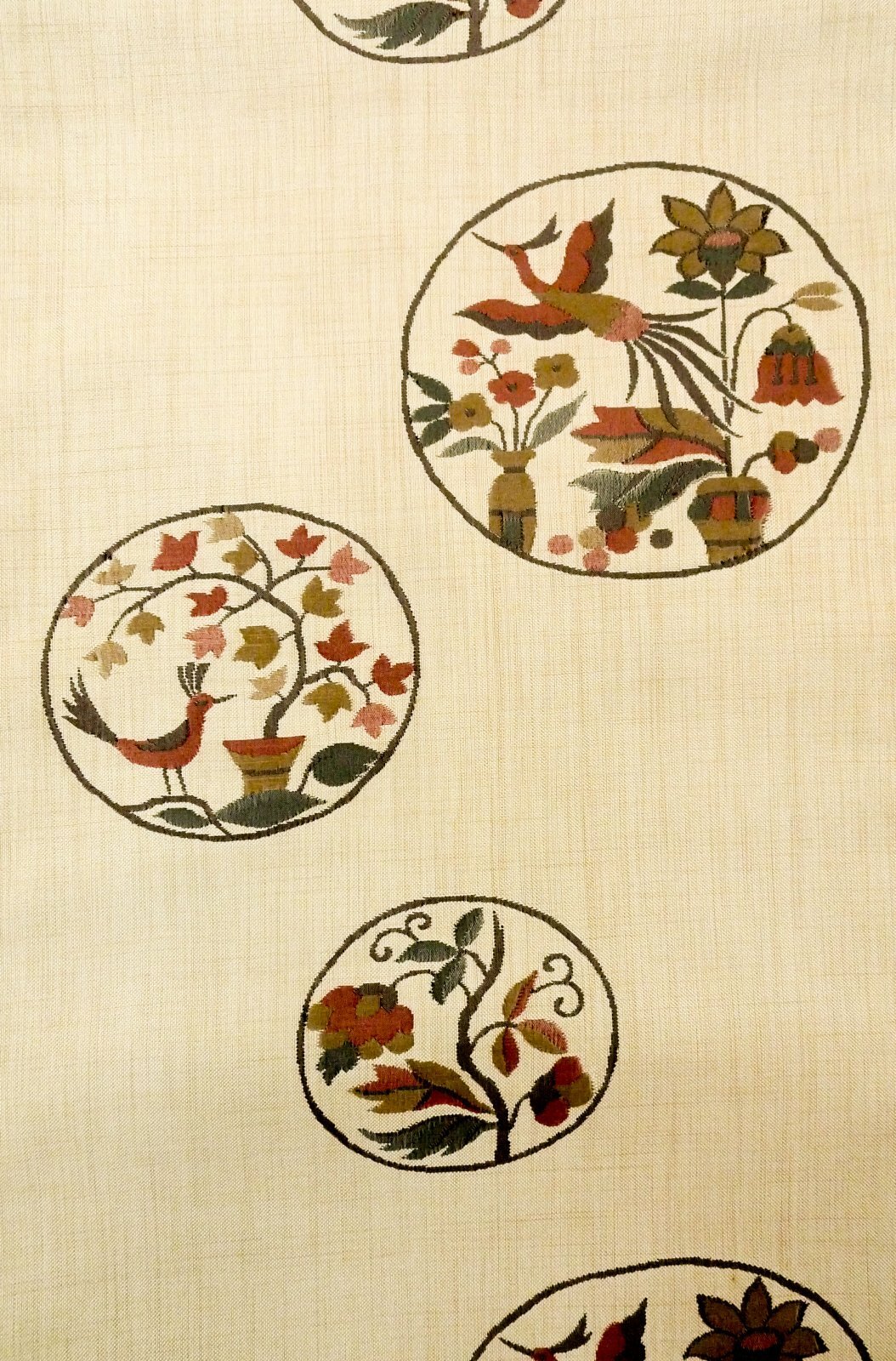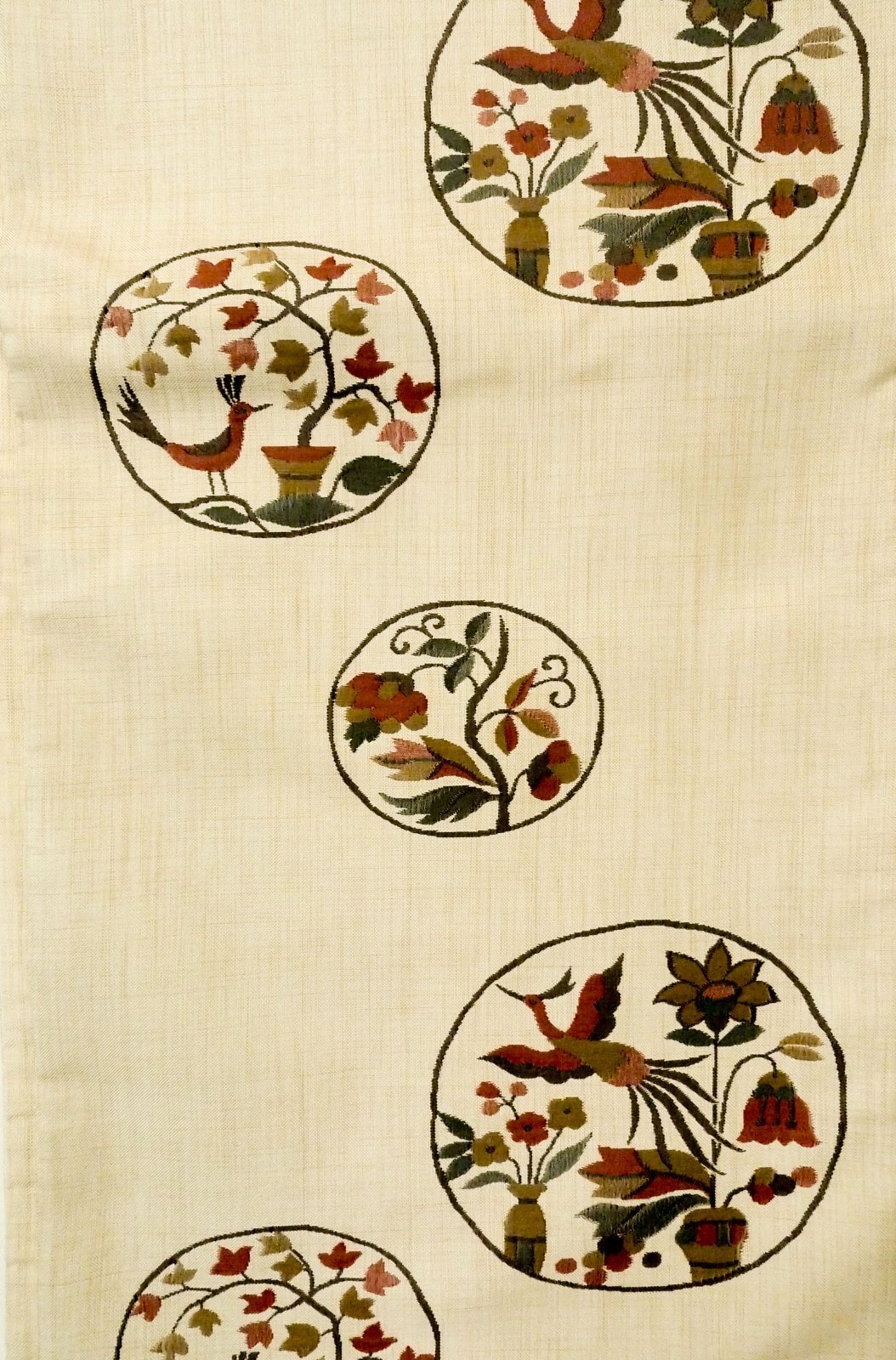 - > P0206Y Vintage Japanese Kimono Pale Ivory FUKURO OBI sash Flower Silk. (Grade A)